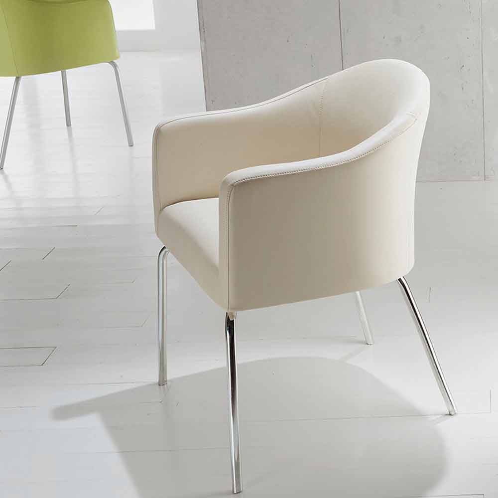 Cadeira Costello de couro sintético de design moderno As cadeiras Costellotem uma estrutura de metal cromado e um assento de couro sintético, disponível em diferentes tons de cores.