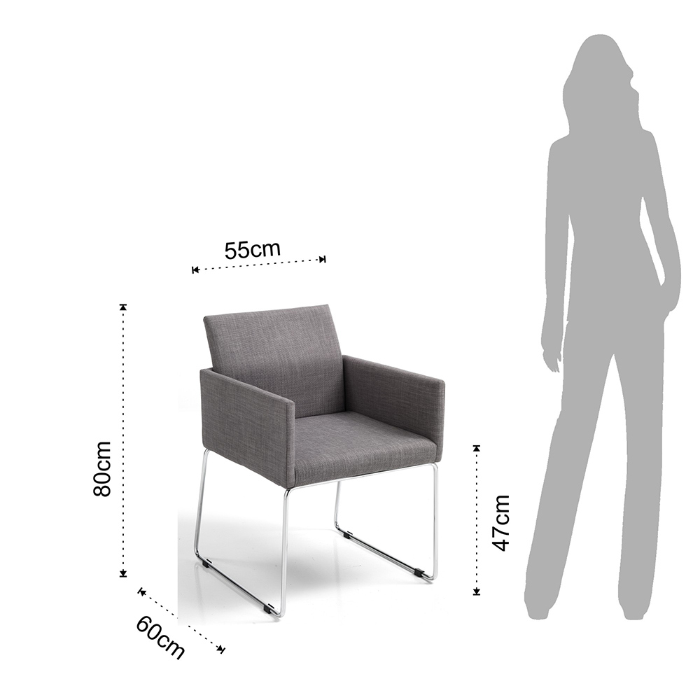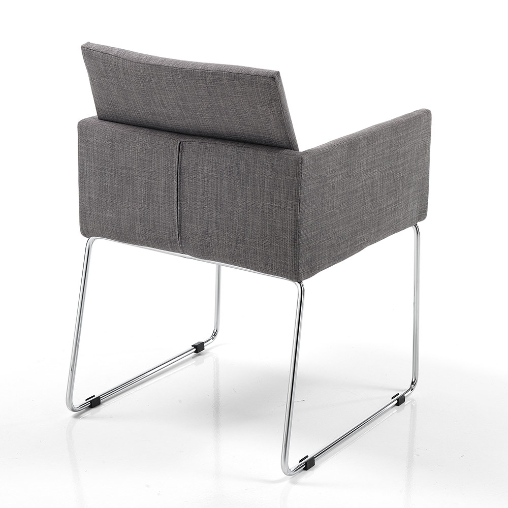 Cadeira de cozinha com estrutura em metal cromado e assento totalmente forrado em tecido cinza equipada com práticos e confortáveis apoios de braços . Ideal para ser colocado na sala de jantar e cozinha, mas também no escritório ou escritório graças ao seu design elegante e requintado e à sua versatilidade de utilização. As formas que marcam a figura oferecem um assento particularmente acolhedor e confortável para garantir momentos maravilhosos de relaxamento.