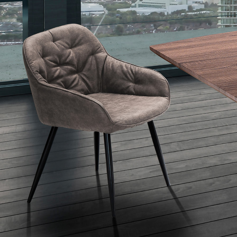 Um acessório de decoração elegante e sofisticado caracterizado pelo espaldar particular enriquecido por costuras que conferem à estética final da cadeira um