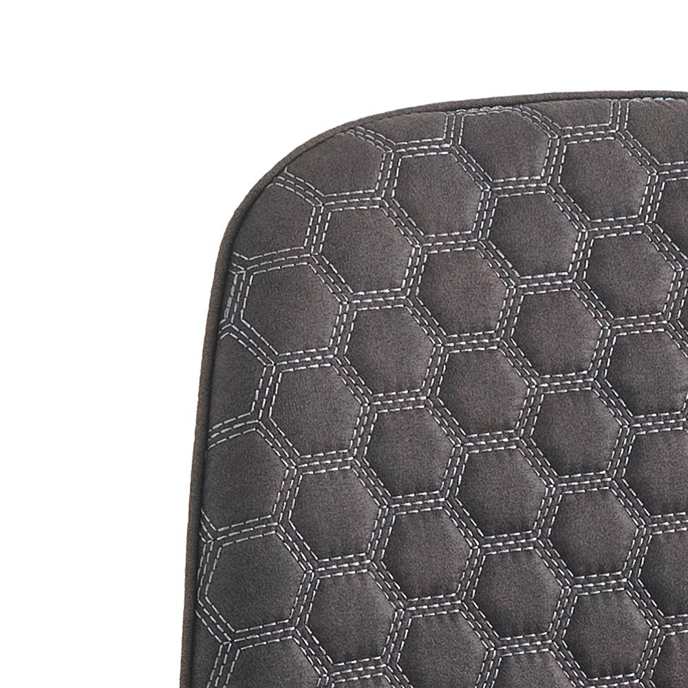encosto acolchoado e acolchoado com costuras geométricas que tornam o look final único para um