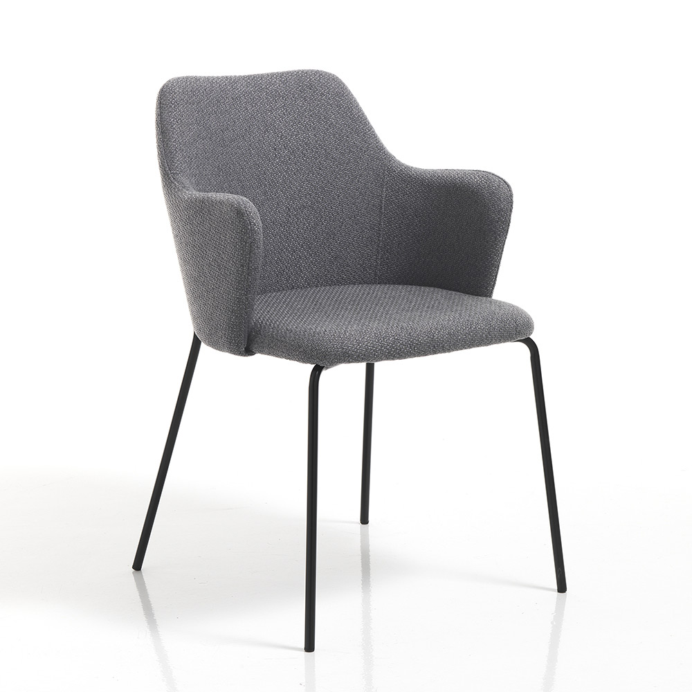 Cadeira da sala de jantar em tecido e metal pintado de preto, 2 peças.