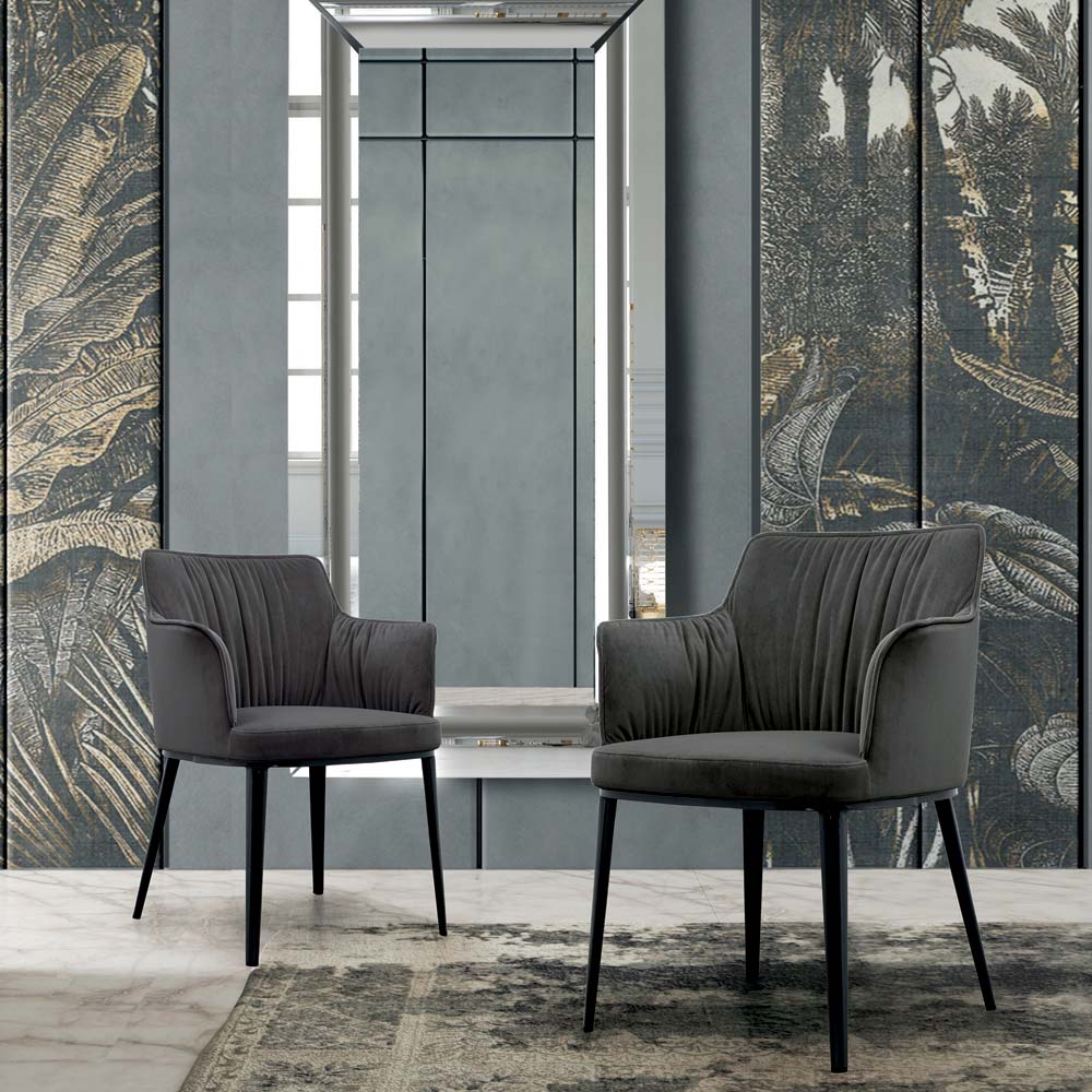 Cadeira da sala de jantar em veludo e aço preto, de alta qualidade Made in Italy.