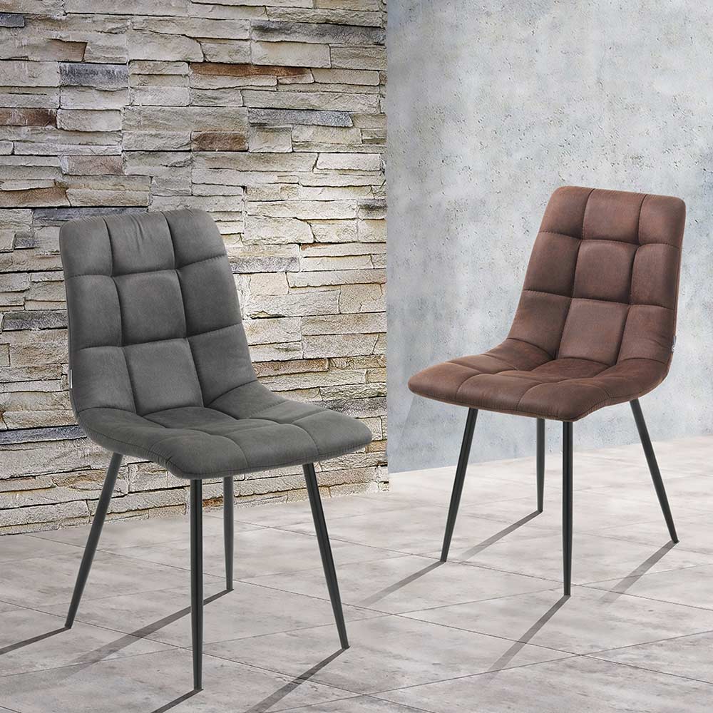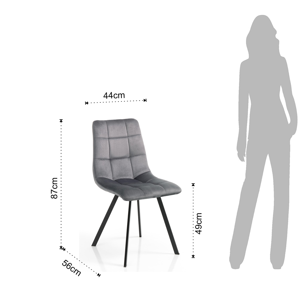 Cadeira de sala de jantar ou cozinha em metal e microfibra com efeito veludo, 4 peças.
