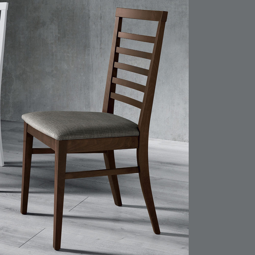 Cadeira de cozinha de design em madeira de faia e tecido fabricado na Itália.