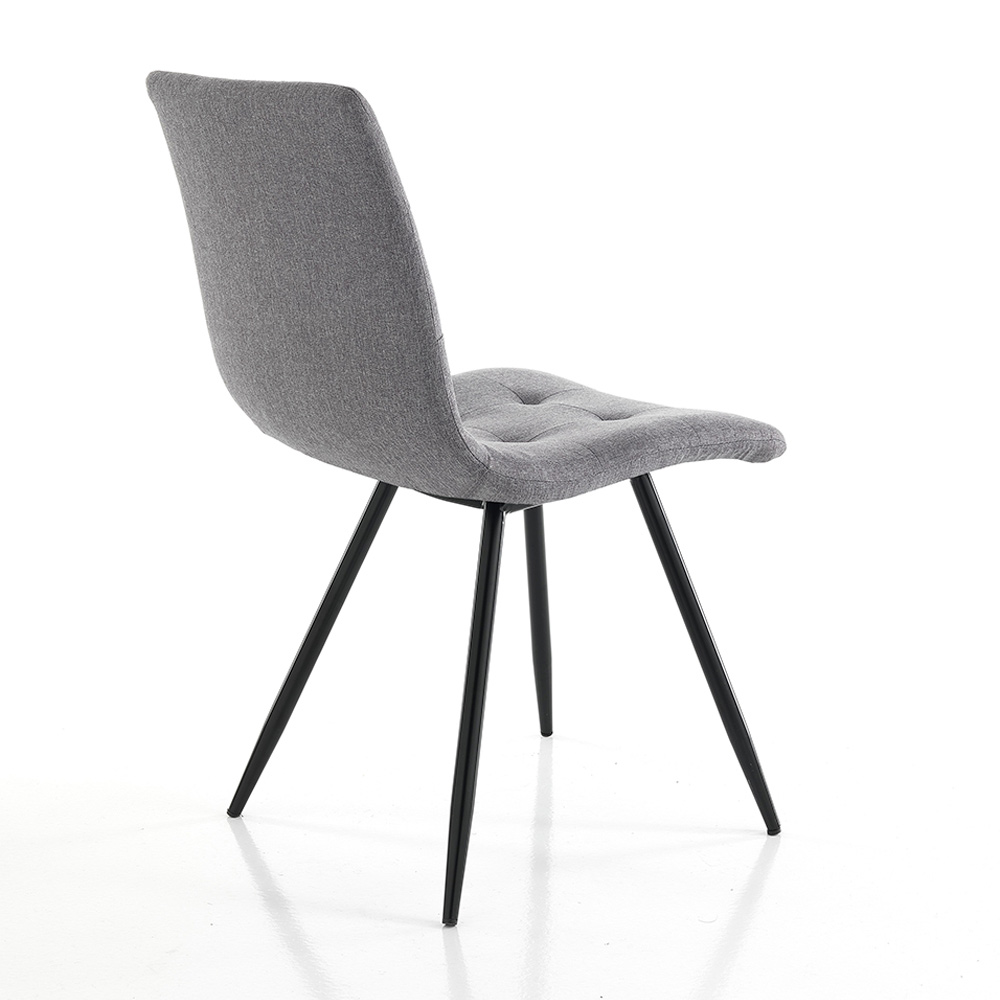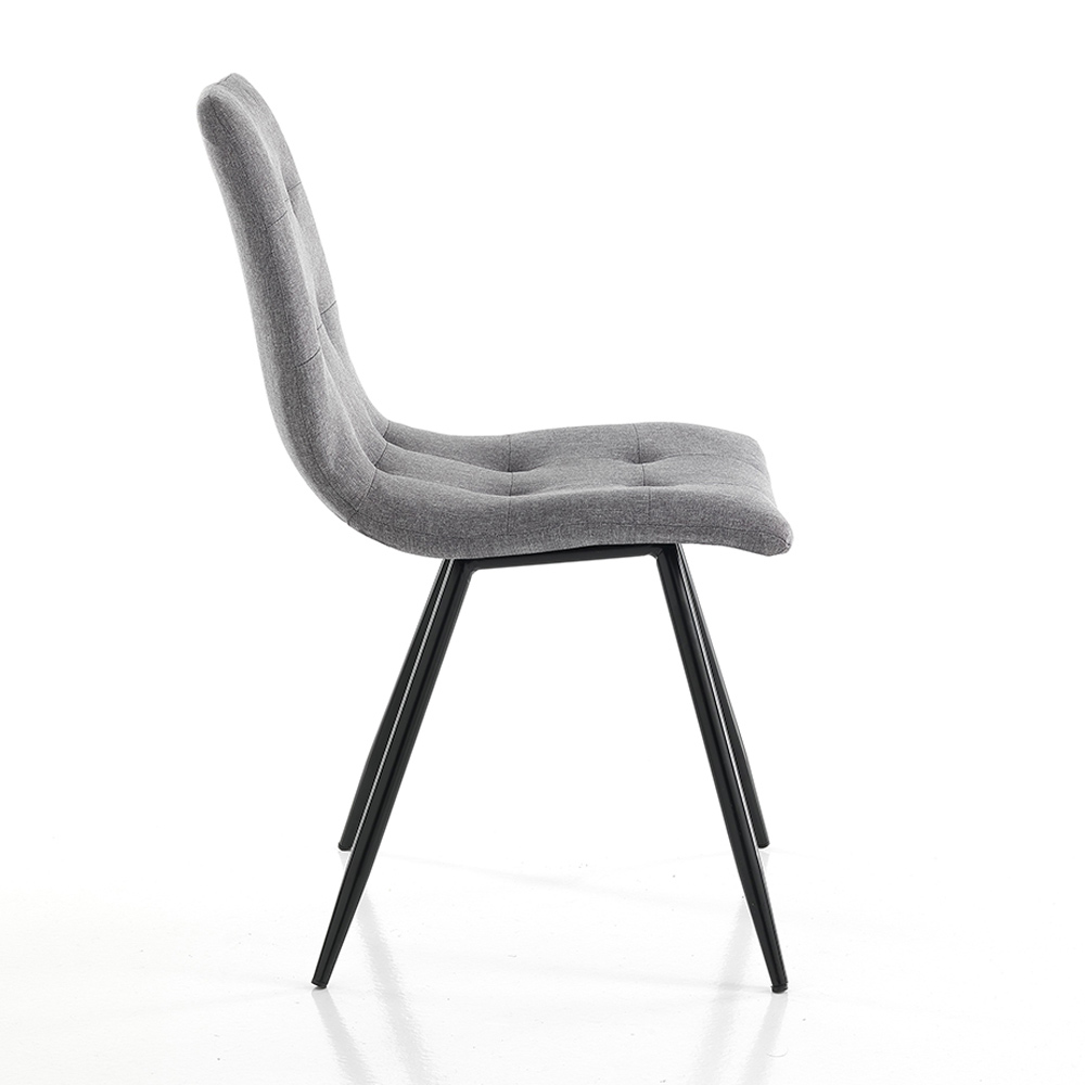 Cadeira de cozinha ou sala de jantar com pernas em metal pintado de preto mate e assento acolchoado forrado em tecido cinza . Combina na perfeição com todos os estilos de mobiliário moderno, do mais minimalista ao mais requintado, conferindo elegância à divisão sem tirar os olhos da mesa de jantar que representa o ponto focal do ambiente mas criando junto com ela uma maravilhosa harmonia de estilos para um resultado original, requintado e com forte personalidade moderna .