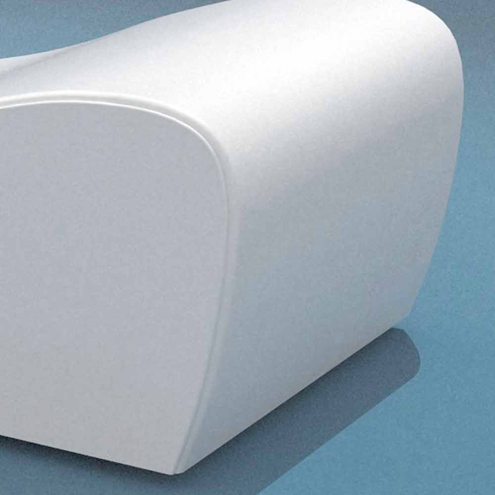 O Onda chaiselongue pode ser usado em spas, hotéis, resorts e é adequado tanto para ambientes internos quanto externos. É feito de couro faux náutico branco eco-friendly. Este tipo de revestimento é certificado para uso externo e é resistente a manchas, anti-umidade, removível, facilmente lavável, resistente à água e à prova de fogo. O preenchimento é feito de espuma de poliuretano não deformável. A poltrona Onda é fornecida com uma base de compensado de 1 cm e 4 pés.