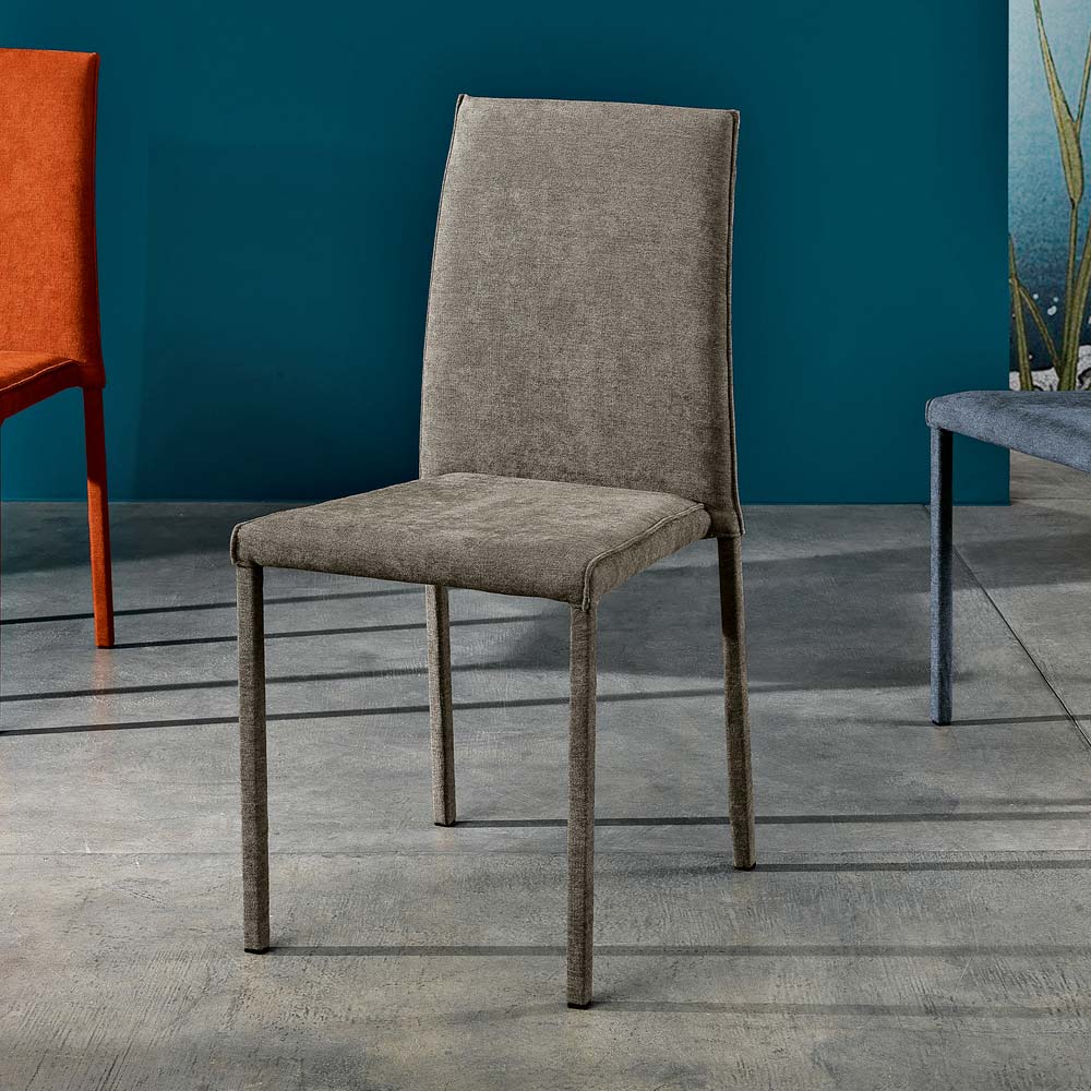 Conny é uma incrível cadeira empilhável para sala de jantar , completamente coberta de tecido e realizada artesanalmente na Itália.