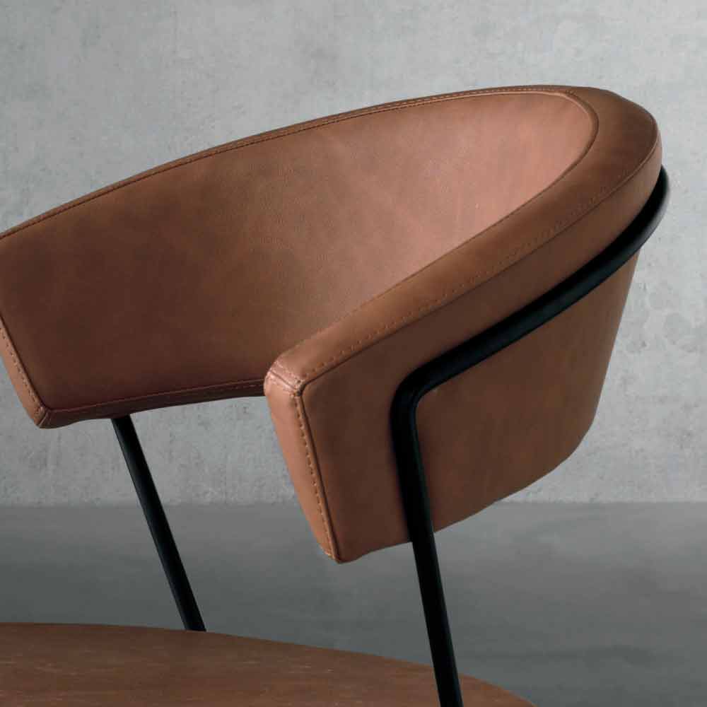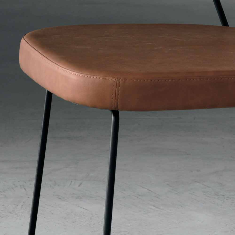 Inteiramente feito na Itália, com uma estrutura de metal preto fosco e um assento de cor de tabaco.