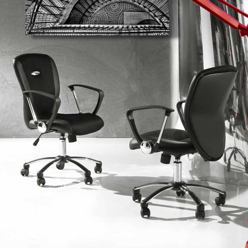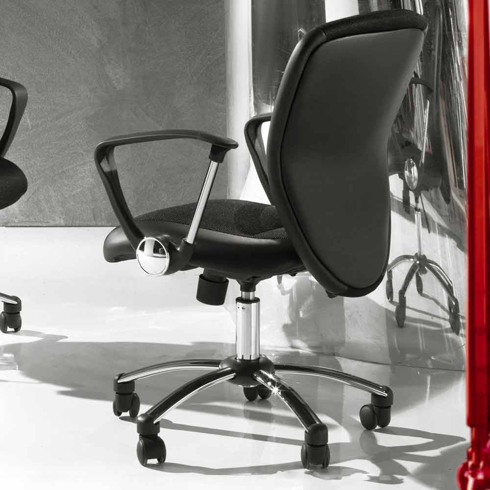 Cadeira de Escritório com Rodas Giratórias em Eco-Couro e Metal - Amarilda
