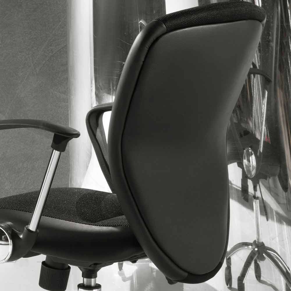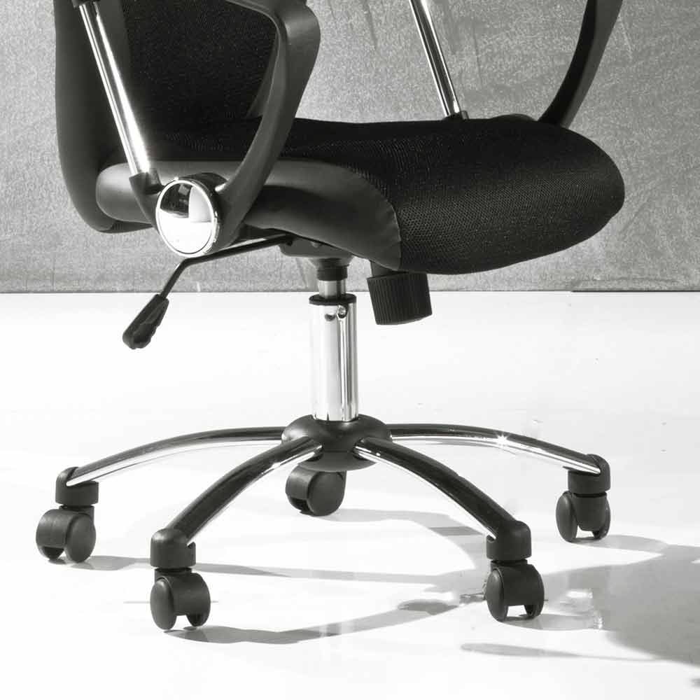 A cadeira giratória de escritório Giovanna é ideal para dar liberdade de movimentos e máximo conforto ao usuário; vem com assento giratório com elevador a gás, estrutura em metal cromado com rodas em poliuretano; assento forrado em puma preto e encosto em technorete microperfurado preto.