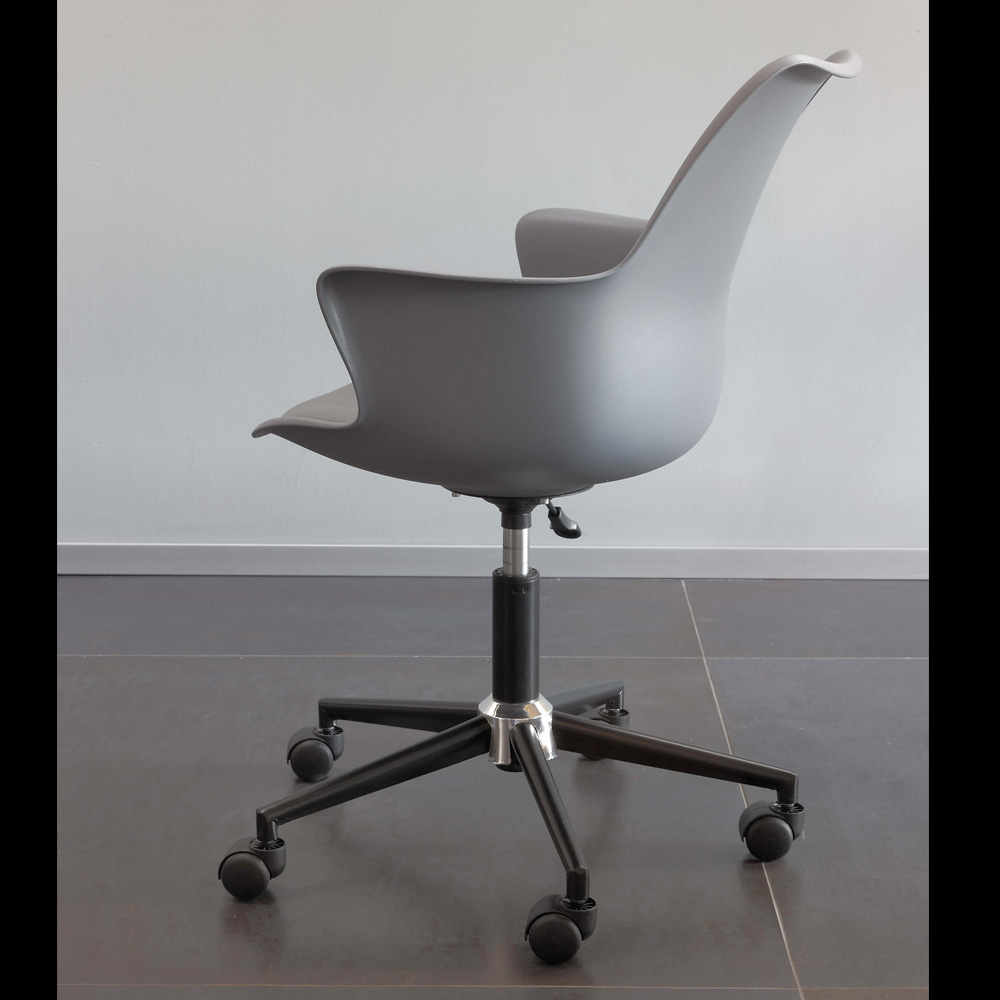 polipropileno. Linhas suaves e envolventes caracterizam o assento desta cadeira que visa proporcionar conforto e comodidade. Graças à possibilidade de ajuste de altura e às rodas giratórias é possível adaptá-la para melhor atender às diferentes necessidades da pessoa, tornando-se uma cadeira confortável e funcional para todos.