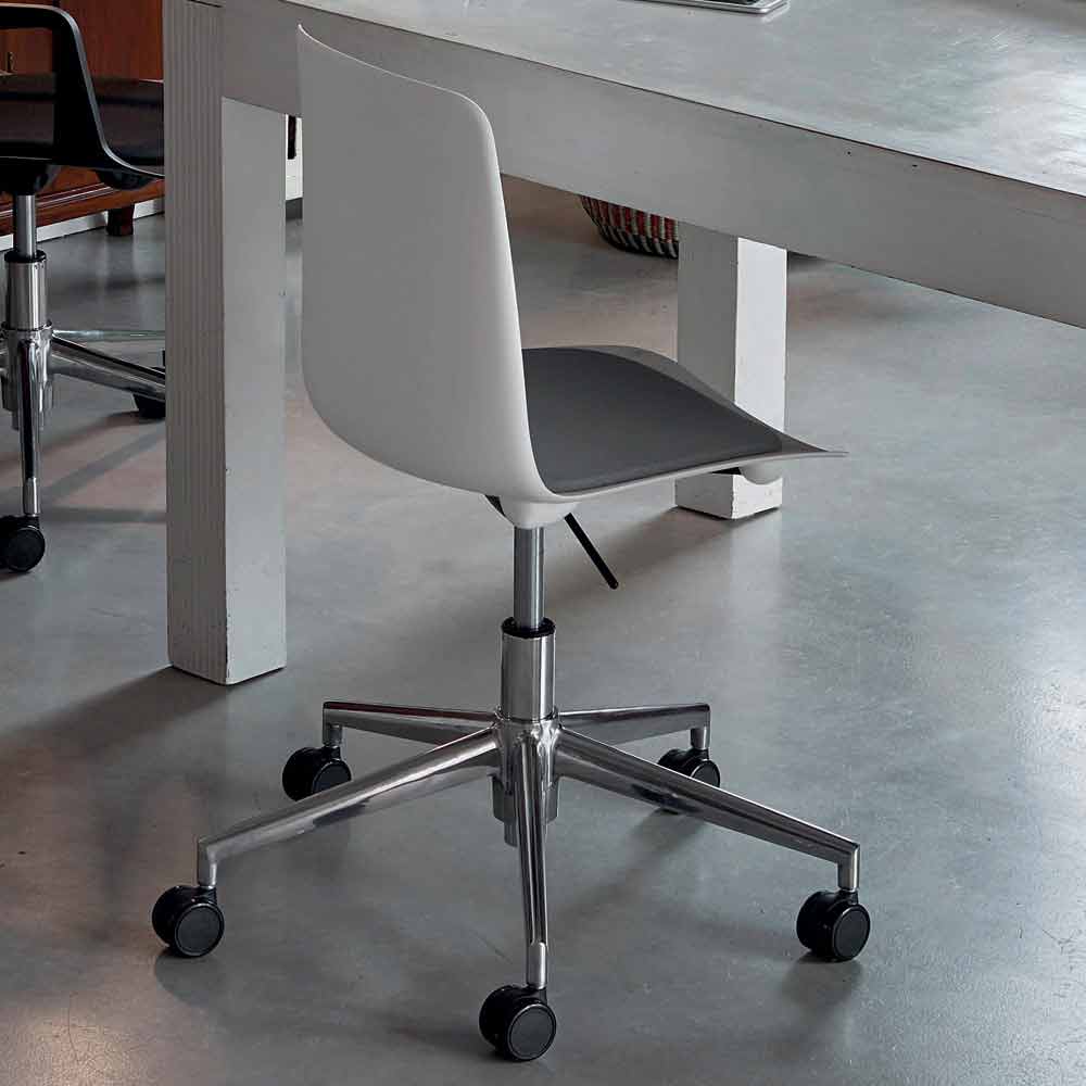 Cadeira de escritório em alumínio polido e polipropileno com rodas Fabricado na Itália, 2 peças.