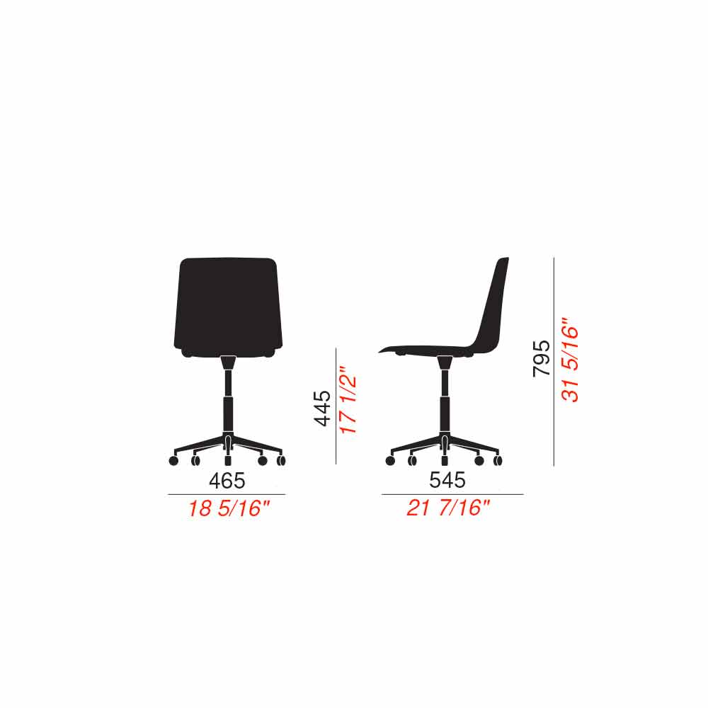 Charita consiste em um assento de polipropileno disponível em 7 cores diferentes e uma estrutura de alumínio polido também equipada com uma base giratória para maior conforto e maior funcionalidade.