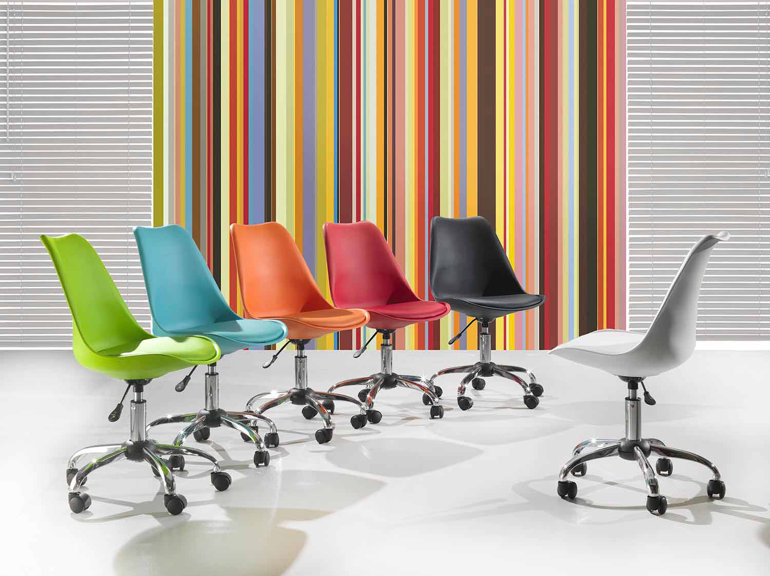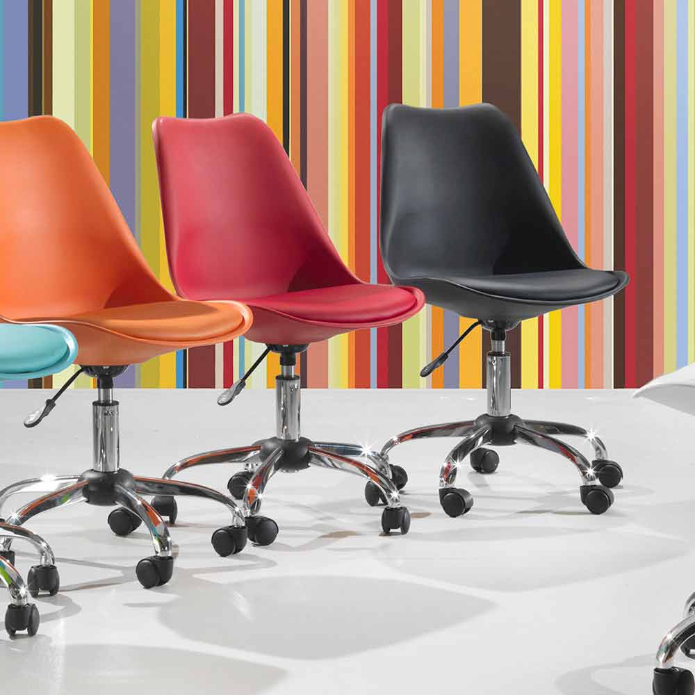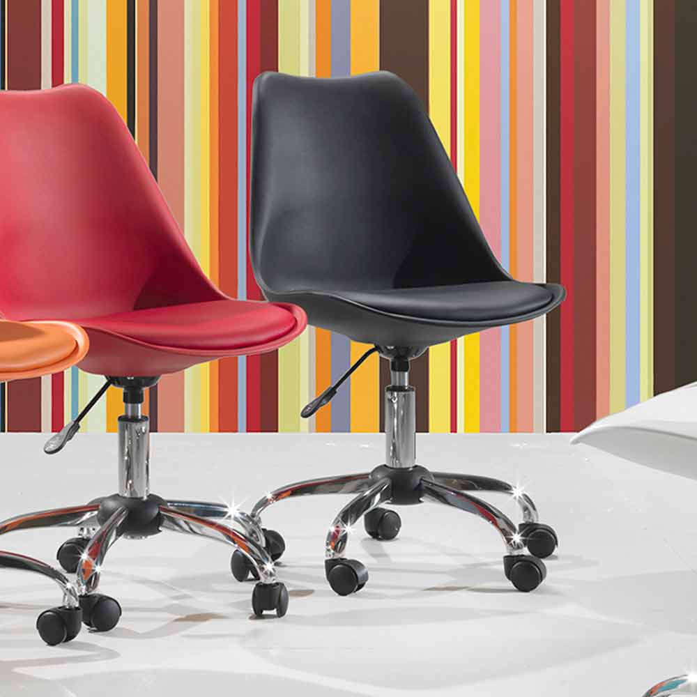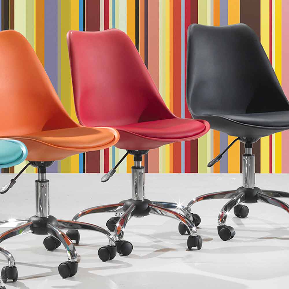 A cadeira de escritório Loredana é ideal para garantir o máximo conforto durante o horário de trabalho graças ao seu assento com elevador a gás. Produzido com assento de polipropileno e confortável por almofada de couro ecológico combinando com assento e base de metal cromado com rodas.