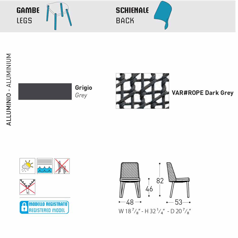 Varaschin Emma cadeira ao ar livre em tecido e alumínio cinza