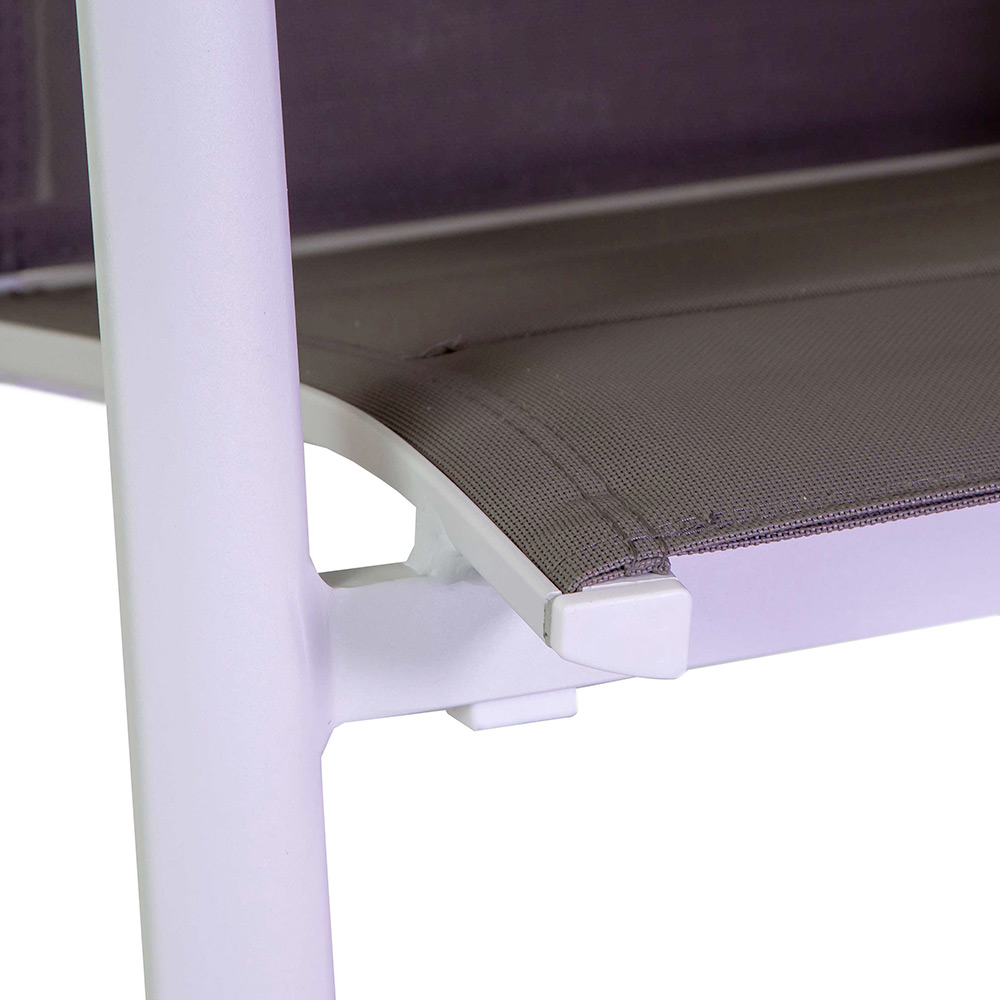 Esta cadeira de jardim combina elegância moderna e conforto incomparável , ideal para qualquer espaço exterior. Possui uma estrutura de alumínio , notável por sua durabilidade e facilidade de manutenção , juntamente com um assento e encosto de textileno que garantem conforto e resistência aos agentes atmosféricos.