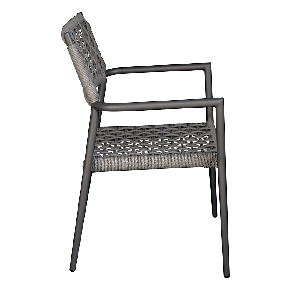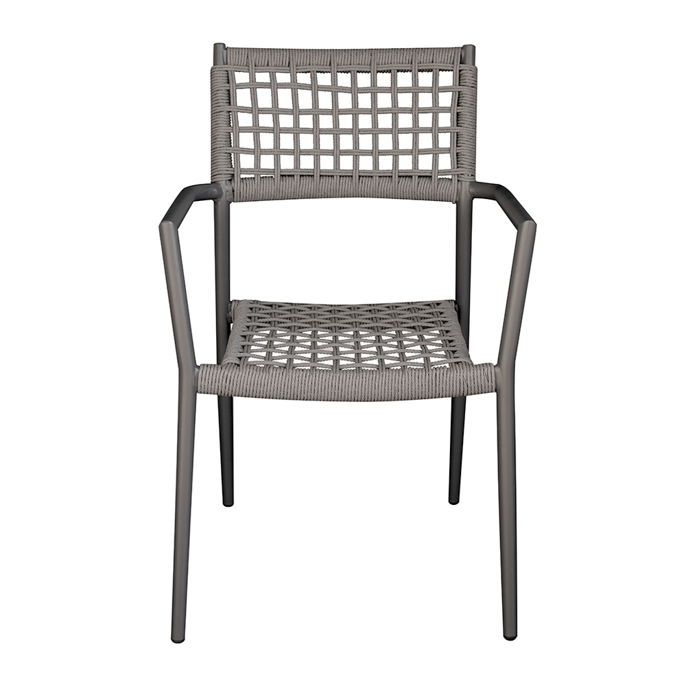 A estrutura de alumínio é leve, durável e projetada para durar, mesmo sob o clima. Graças à caraterística empilhável, esta cadeira é perfeita para otimizar o espaço, tornando-a prática tanto para uso privado quanto para contrato.