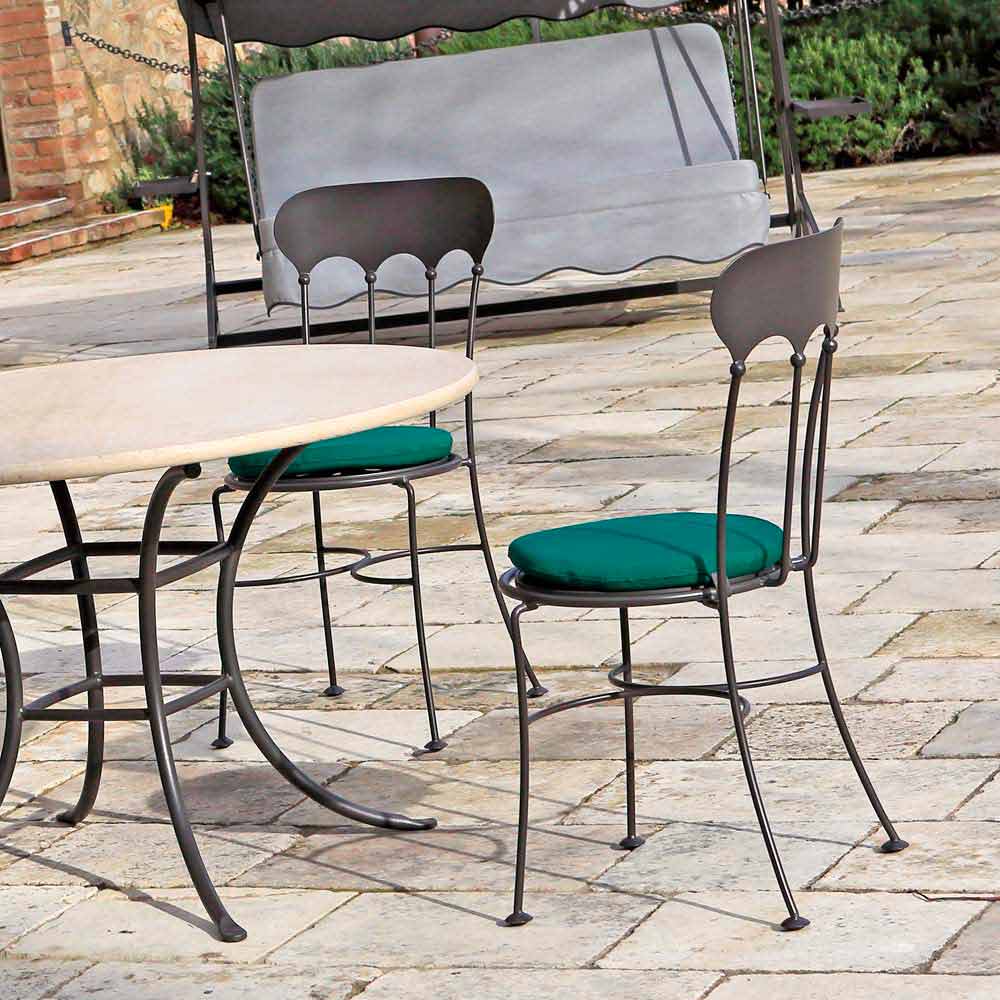 Cadeira empilhável de ferro exterior com almofada artesanal na Itália, 2 peças.