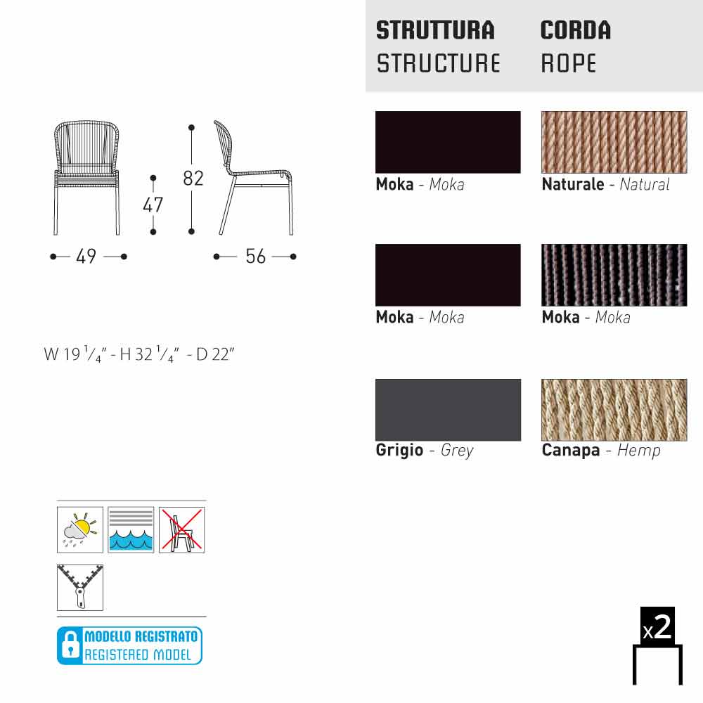 Varaschin Cricket cadeira de jantar ao ar livre com um design moderno, conjunto de 2