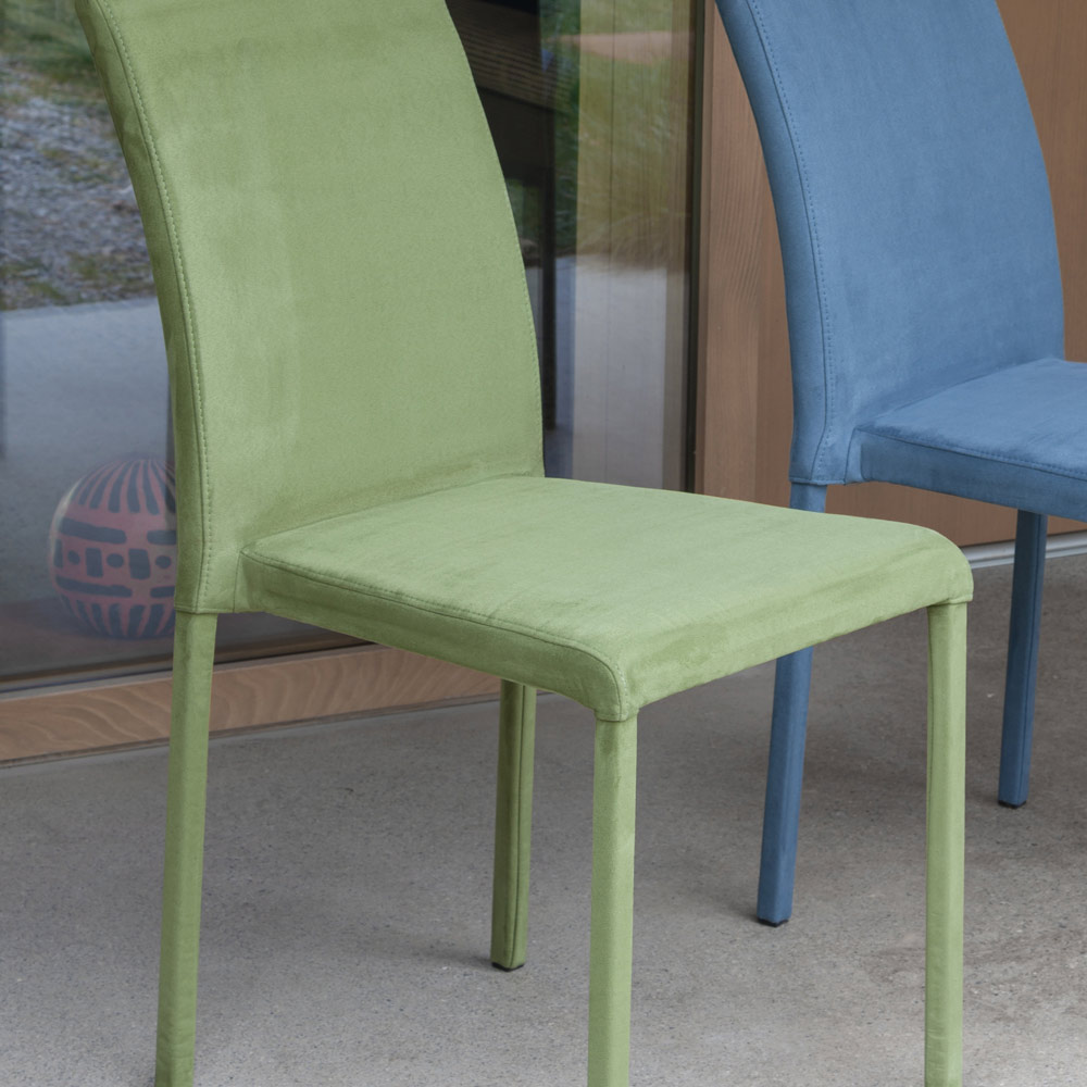 Cadeira de jantar empilhável composta por uma estrutura metálica revestida de econabuk colorido repelente de água. Esta cadeira de jantar é o resultado de materiais simples e de qualidade que ajudam a criar um produto perfeito para qualquer ambiente. Caracterizada por um design esguio e elegante, esta cadeira apresenta linhas simples e sinuosas combinadas com um estilo delicado .