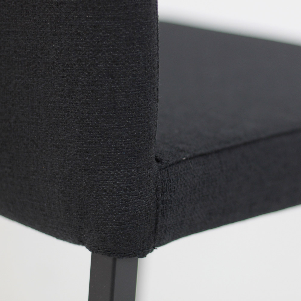 fabricada na Itália com encosto alto, pernas laqueadas pretas e assento em tecido structura preto perfeito para a casa e adequado para o contrato. Este conjunto de decoração é uma ideia perfeita para todos aqueles que desejam dar um toque especial e moderno ao ambiente, sem abrir mão da