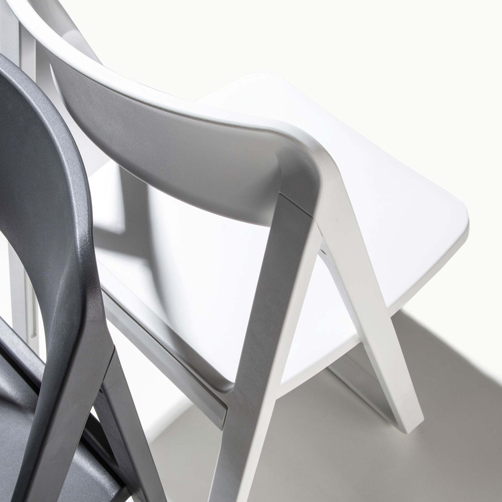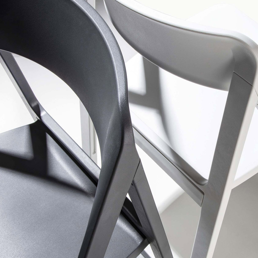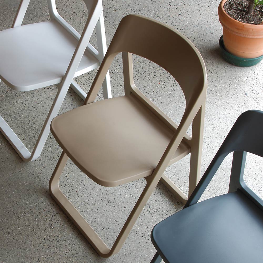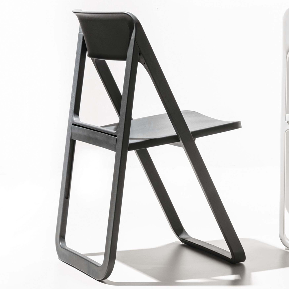 Cadeira moderna em polipropileno colorido e caracterizada pela particular estrutura dobrável que a torna ideal para mobiliar qualquer espaço doméstico ou contratual com personalidade e originalidade . Um complemento com estética criativa e formas essenciais pensadas para dar cor e vivacidade aos ambientes, oferecendo uma solução particularmente funcional graças à possibilidade de dobrar a estrutura, ocupando assim um espaço mínimo quando não estiver em uso.