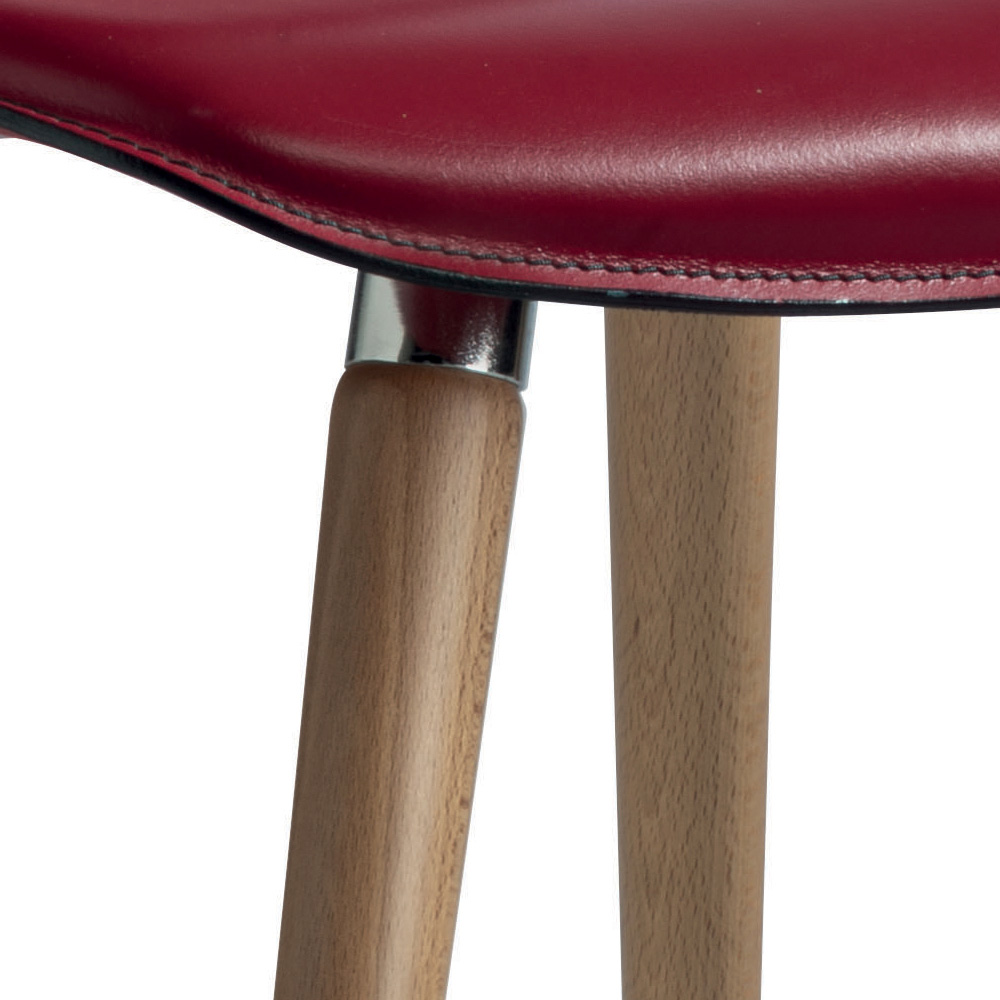 Cadeira de interior com estrutura monocoque em faia natural , assento e encosto em couro regenerado marrom escuro inteiramente fabricado na Itália .
