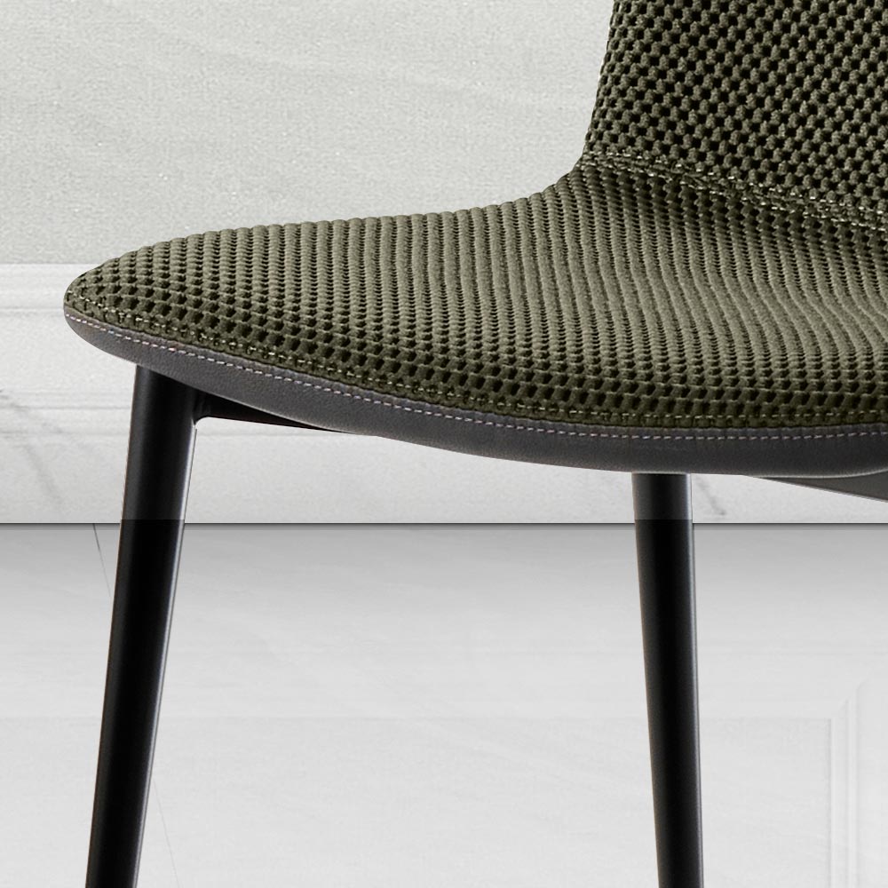 As pernas metálicas finas, mas robustas, expressam força e modernidade, criando um equilíbrio perfeito entre leveza visual e estabilidade estrutural. A escolha dos materiais e o design cuidadosamente pensado garantem conforto e durabilidade , tornando esta cadeira um complemento ideal tanto para o ambiente doméstico como profissional.