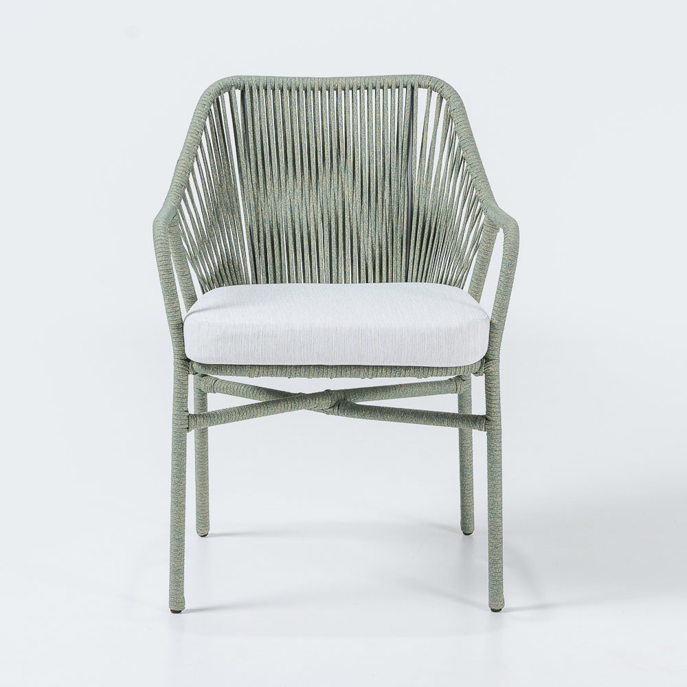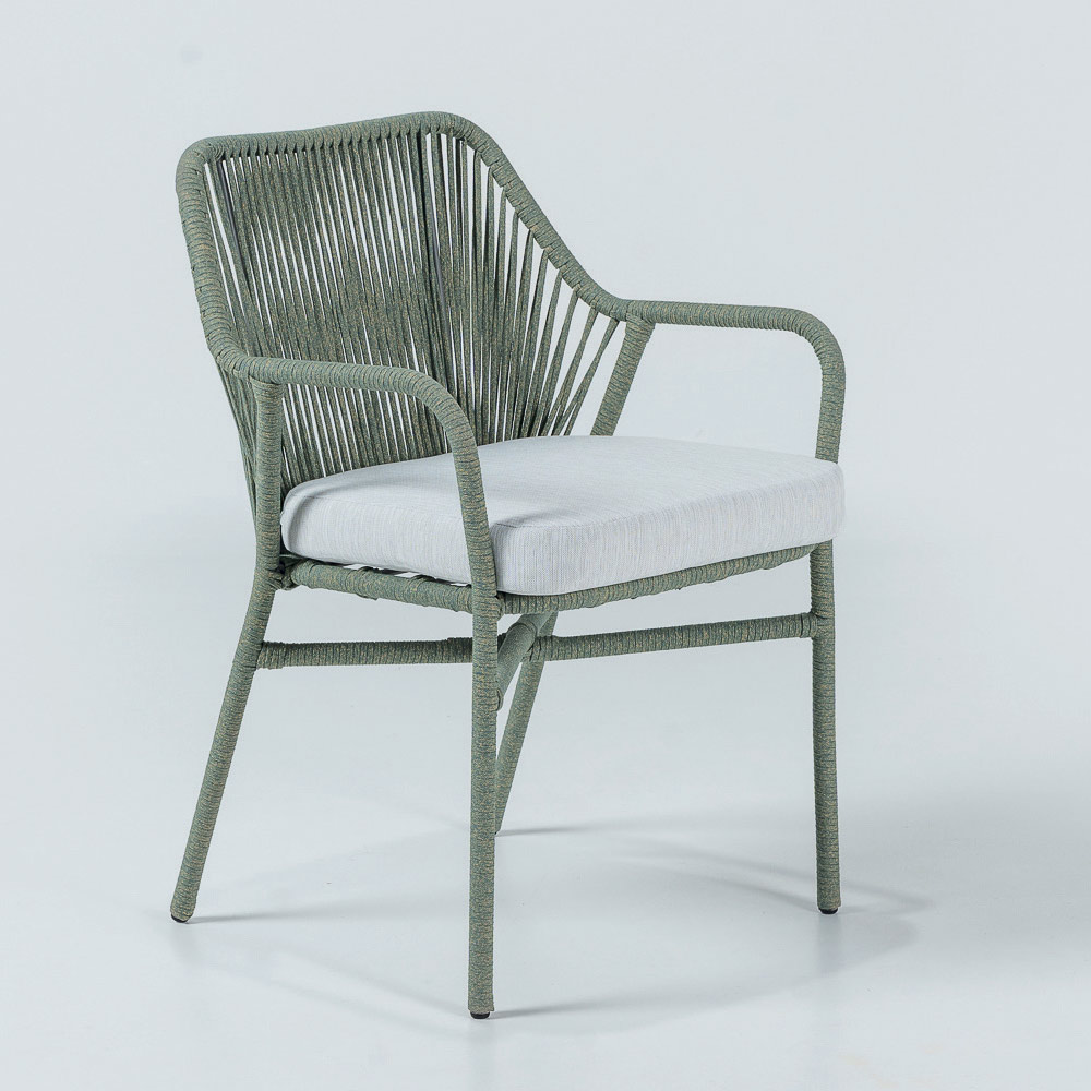 Poltrona de jardim em alumínio, tecido de corda e almofada de assento