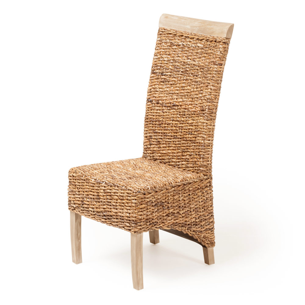 Cadeira de exterior feita em tecido à mão banana . As pernas da cadeira são feitas de madeira.