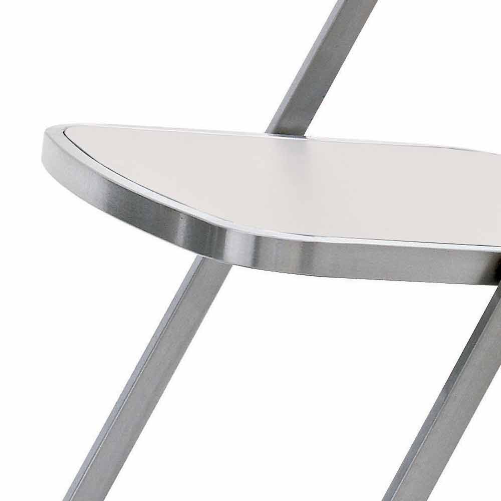 Fantástica cadeira empilhável para jardim em aço inoxidável ASI 316 e assento em polipropileno branco.