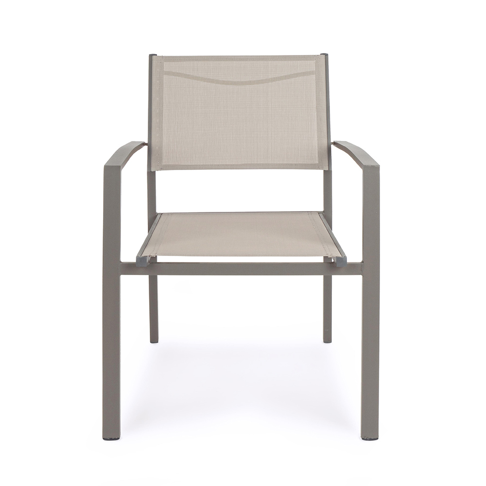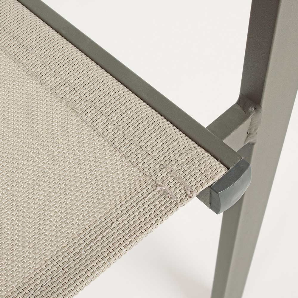 Cadeira empilhável para exteriores em alumínio e textilene, design moderno.