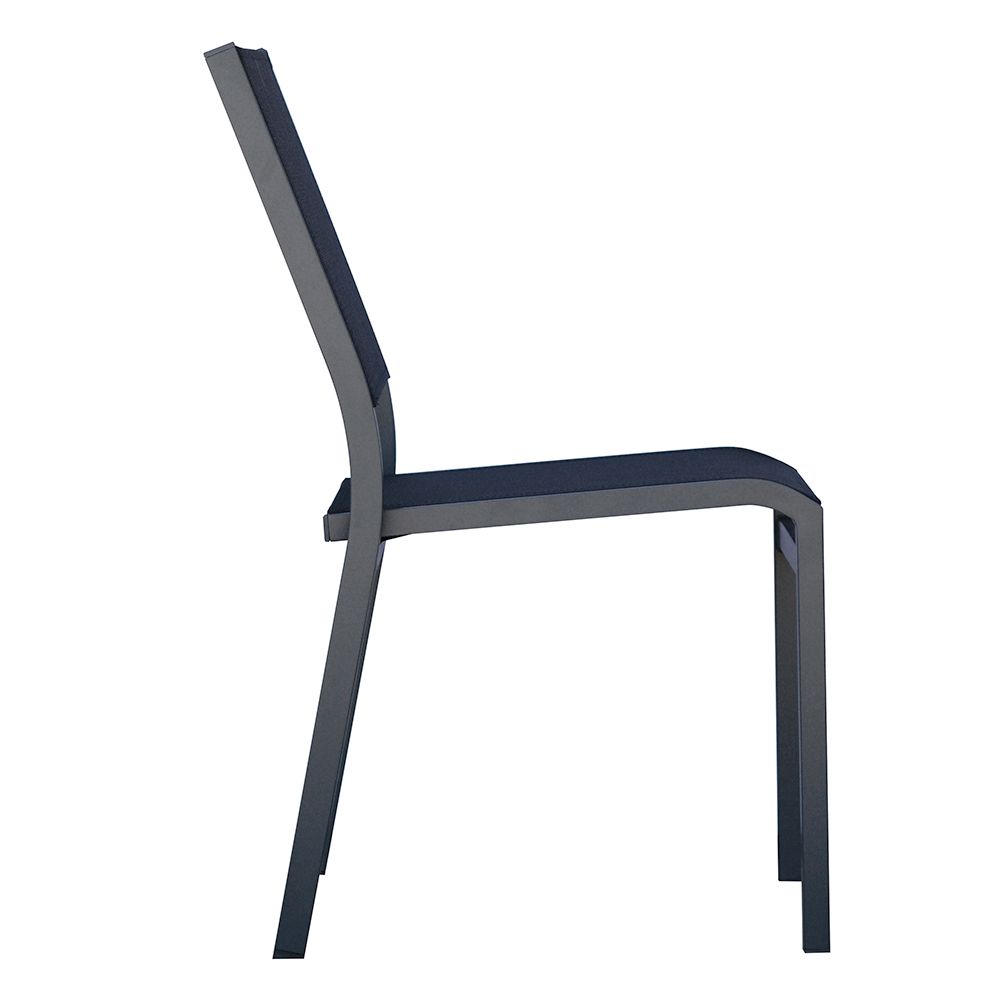 Simplicidade e sofisticação encontram-se nesta cadeira de alumínio e textilene, perfeita para mobilar qualquer espaço exterior com estilo. A estrutura de alumínio garante leveza, resistência e durabilidade, enquanto o assento e o encosto de textileno oferecem conforto ergonômico e alta respirabilidade, ideal para o verão.