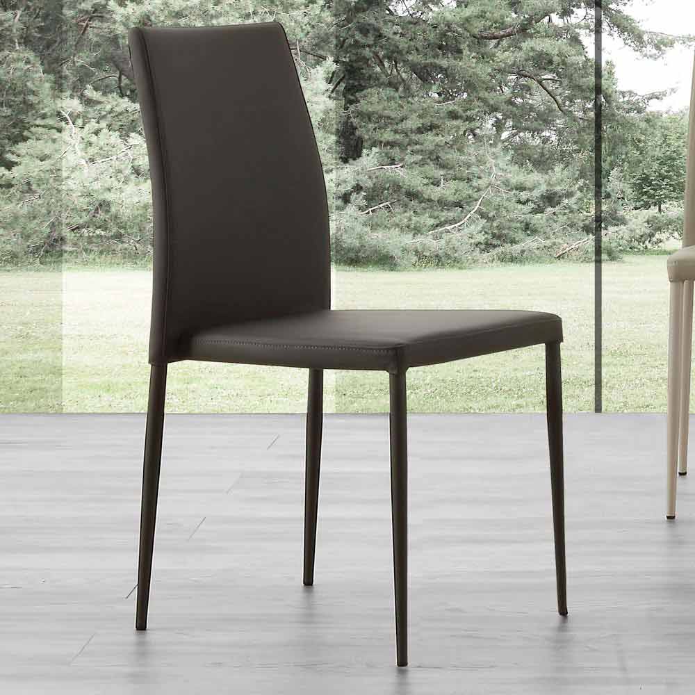 Cadeira estofada de metal e couro ecológico de design Caserta