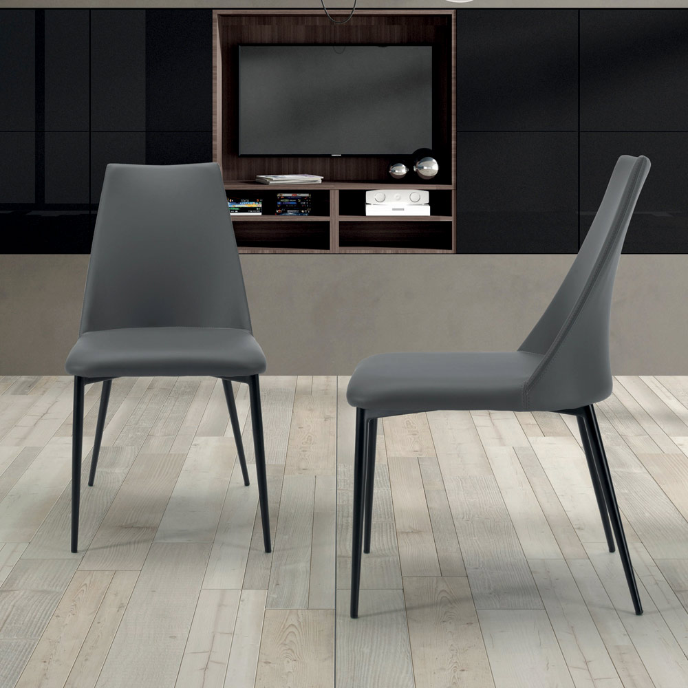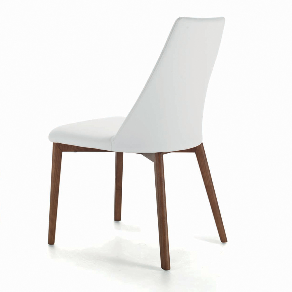 Cadeira de sala confeccionada com assento em aço e encosto totalmente revestido em couro ecológico e pernas em aço ou madeira de freixo. Essencialidade e minimalismo são as características peculiares deste acessório de decoração de estilo contemporâneo pensado para quem gosta de móveis simples mas ao mesmo tempo com forte impacto visual . A leveza estética marcada pelas suas formas é o seu maior ponto forte, permitindo a sua inserção em qualquer contexto, apresentando-se sempre único e original .