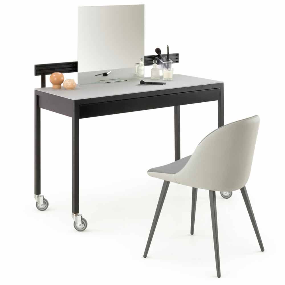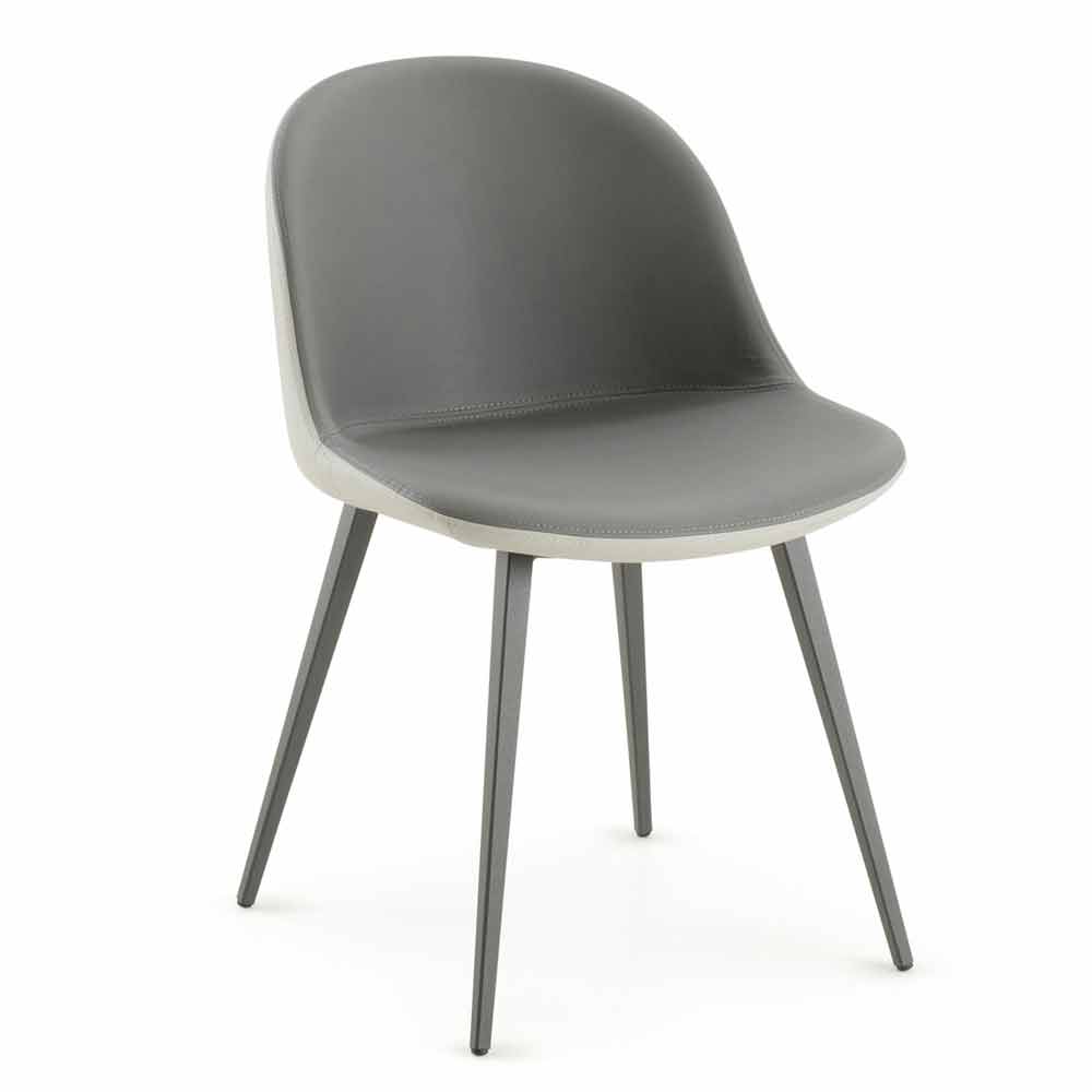 Elegante cadeira para sala de jantar ou cozinha made in Italy com concha forrada a prata e couro ecológico antracite e estrutura em metal pintado a grafite.
