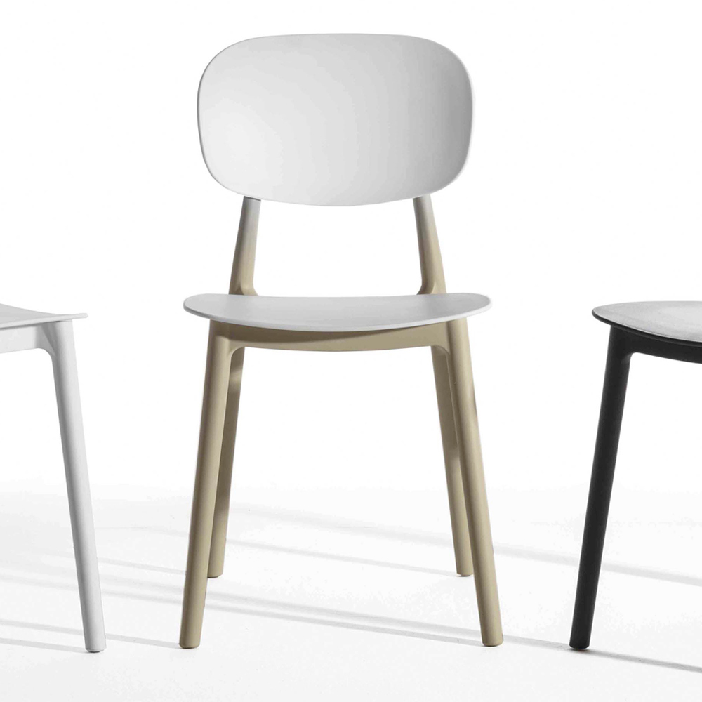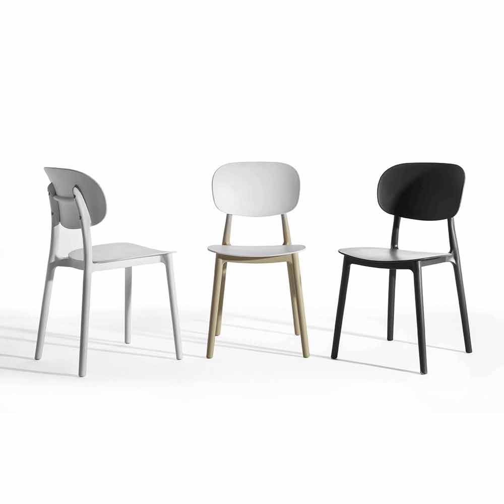 conforto . A sua estrutura garante de facto um assento confortável e acolhedor apesar da simplicidade do seu design e também permite empilhar as cadeiras até no máximo 2 unidades, permitindo assim otimizar os espaços quando necessário. Além disso, as cores neutras que se propõem refletem a