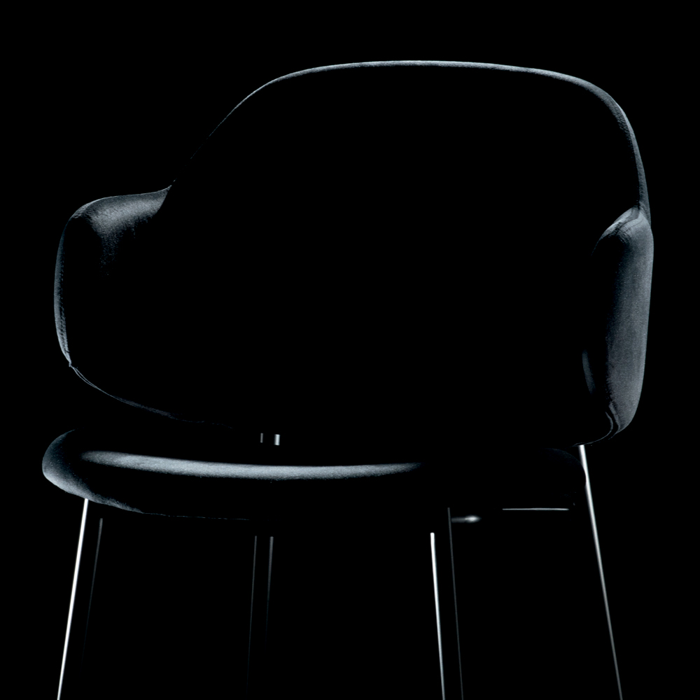 aço lacado preto. Esta cadeira é a ideia perfeita para todos aqueles que pretendem mobiliar ambientes interiores com um toque de singularidade e elegância intemporal. O assento