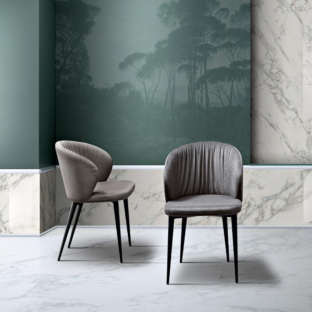 Transforme a sua sala de jantar num espaço mais confortável e elegante com a moderna poltrona revestida em tecido cristal fácil de limpar e disponível em diversas variantes de cores: