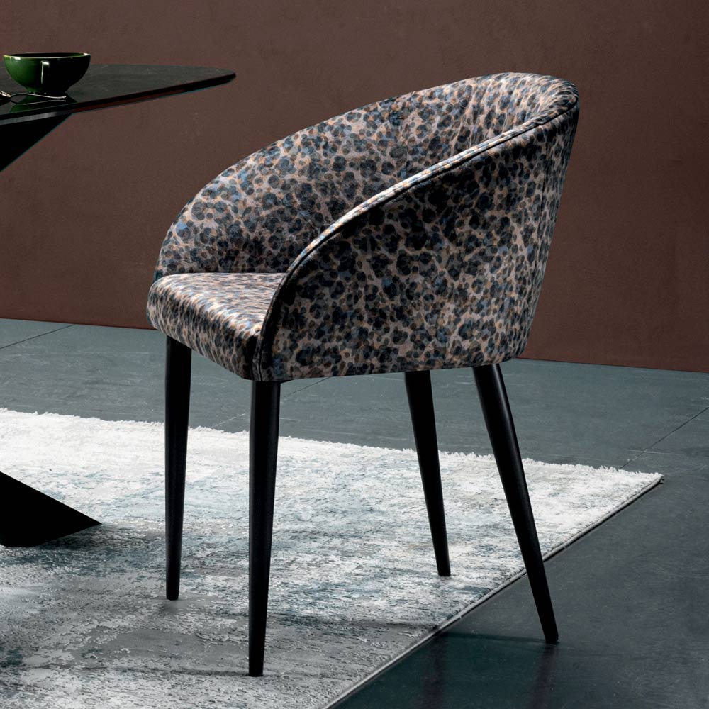 Cadeira de sala de jantar em tecido e aço pintado Fabricado na Itália, 4 peças.
