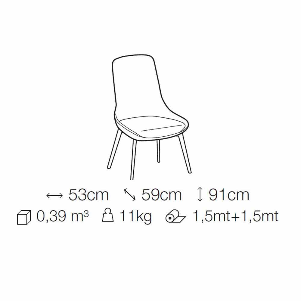 NB : o estofamento da cadeira está disponível em uma ampla gama de diferentes tecidos e cores.