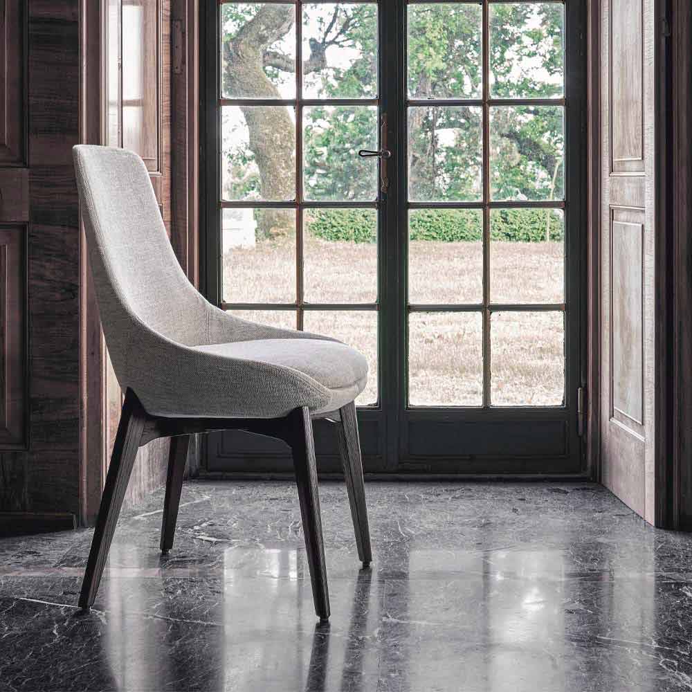 Cadeira da sala de jantar estofada em tecido Made in Italy de alta qualidade.