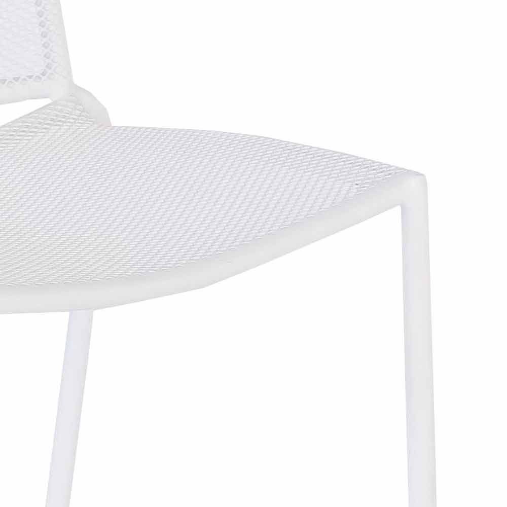 Cadeira empilhável ao ar livre em aço pintado de branco, 4 peças - Jaila