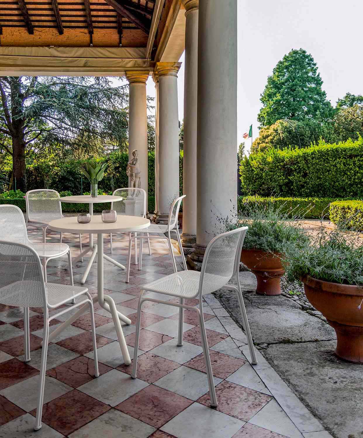 A Prunella é uma maravilhosa cadeira externa totalmente feita de metal e malha de arame que combina perfeitamente as linhas tradicionais com um design contemporâneo, tornando a cadeira leve mas sólida. Também é extremamente fácil de manusear, graças ao corpo levemente elevado em comparação com as pernas. Disponível em 5 variações de cores que lhe permitem dar personalidade a qualquer ambiente.