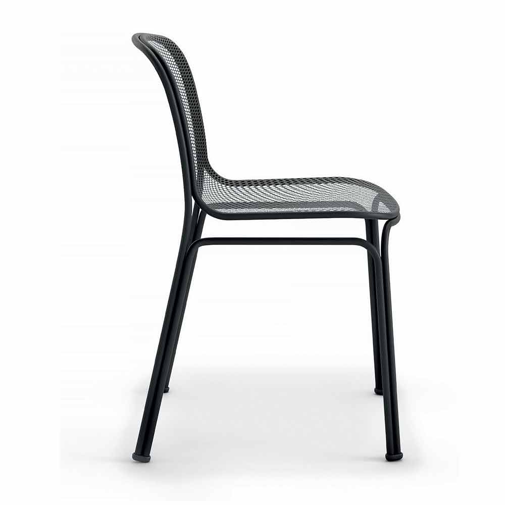 Cadeira empilhável de metal para exterior, fabricada em Itália, 4 peças.