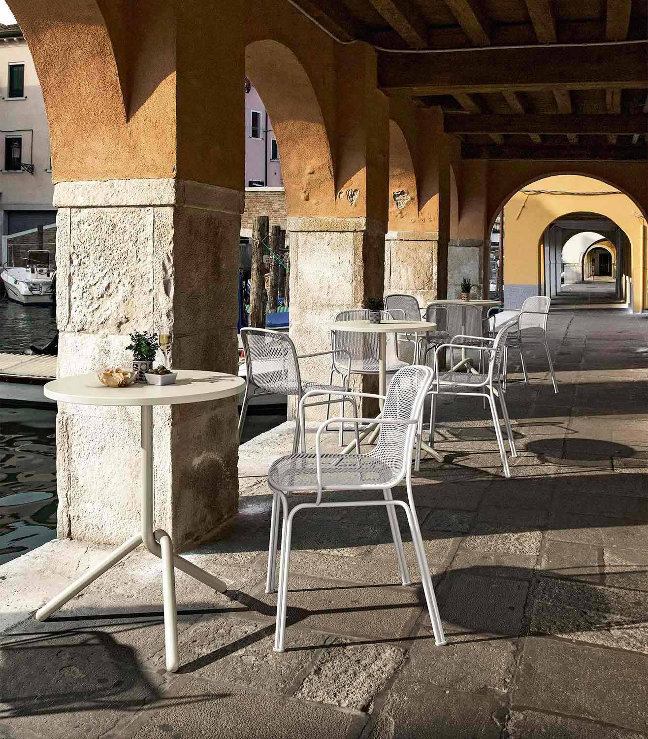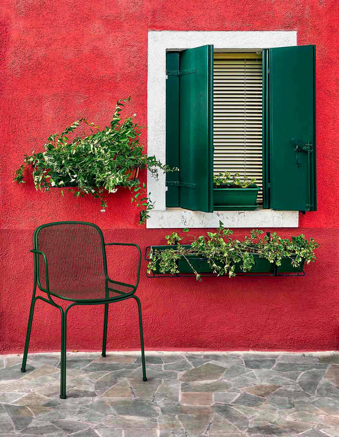 A Verna é uma maravilhosa cadeira de jardim feita inteiramente de malha de metal e arame que combina perfeitamente as linhas tradicionais com um design contemporâneo, tornando a cadeira sólida e confortável, graças à presença dos braços. Também é extremamente fácil de manusear, graças ao corpo levemente elevado em comparação com as pernas. Disponível em 5 variações de cores que lhe conferem personalidade a qualquer ambiente, a Verna é uma cadeira empilhável de até 6 unidades, permitindo otimizar os espaços da melhor forma.
