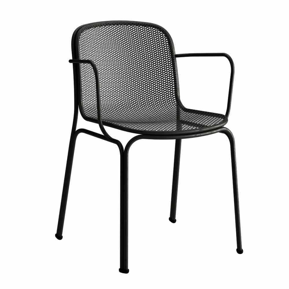 Cadeira empilhável de metal com pintura para exterior, com braços, fabricada em Itália, 4 peças.