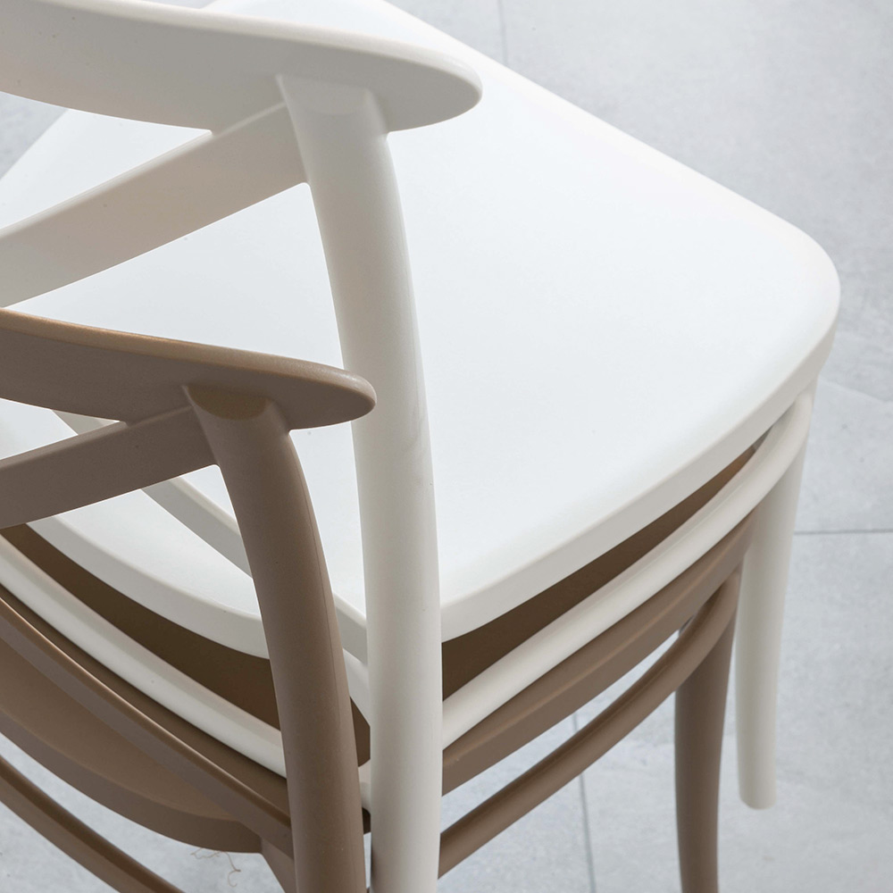resina reforçada com fibra de vidro. Este produto foi pensado para todos aqueles que desejam aliar funcionalidade à simplicidade. Na verdade, esta cadeira é perfeita para inclusão em áreas de estar, cozinhas e salas de jantar, tanto internas como externas, onde se vivenciam os momentos diários em família e onde a praticidade é essencial. Graças aos materiais utilizados na produção, queremos garantir ao cliente um produto não só bonito de ver, mas também de qualidade e resistente ao longo do tempo.