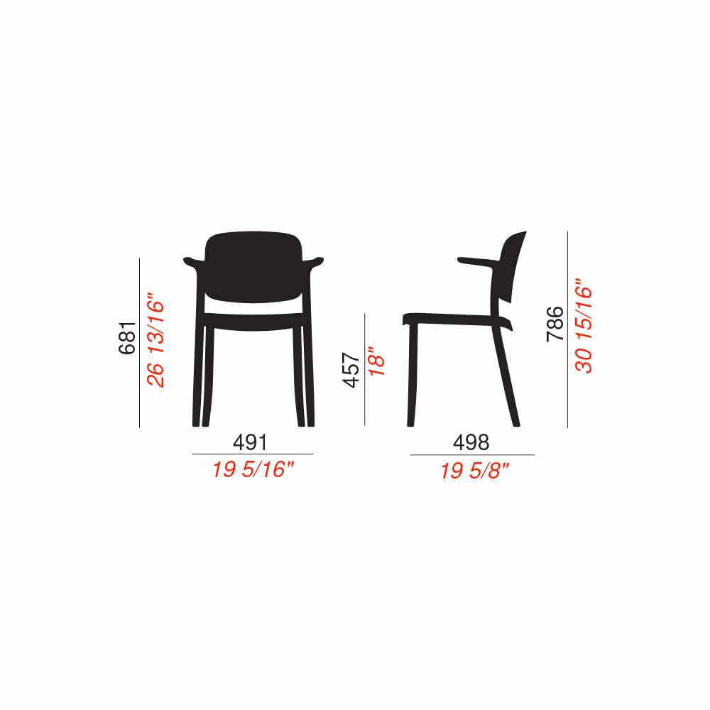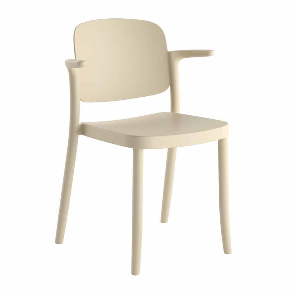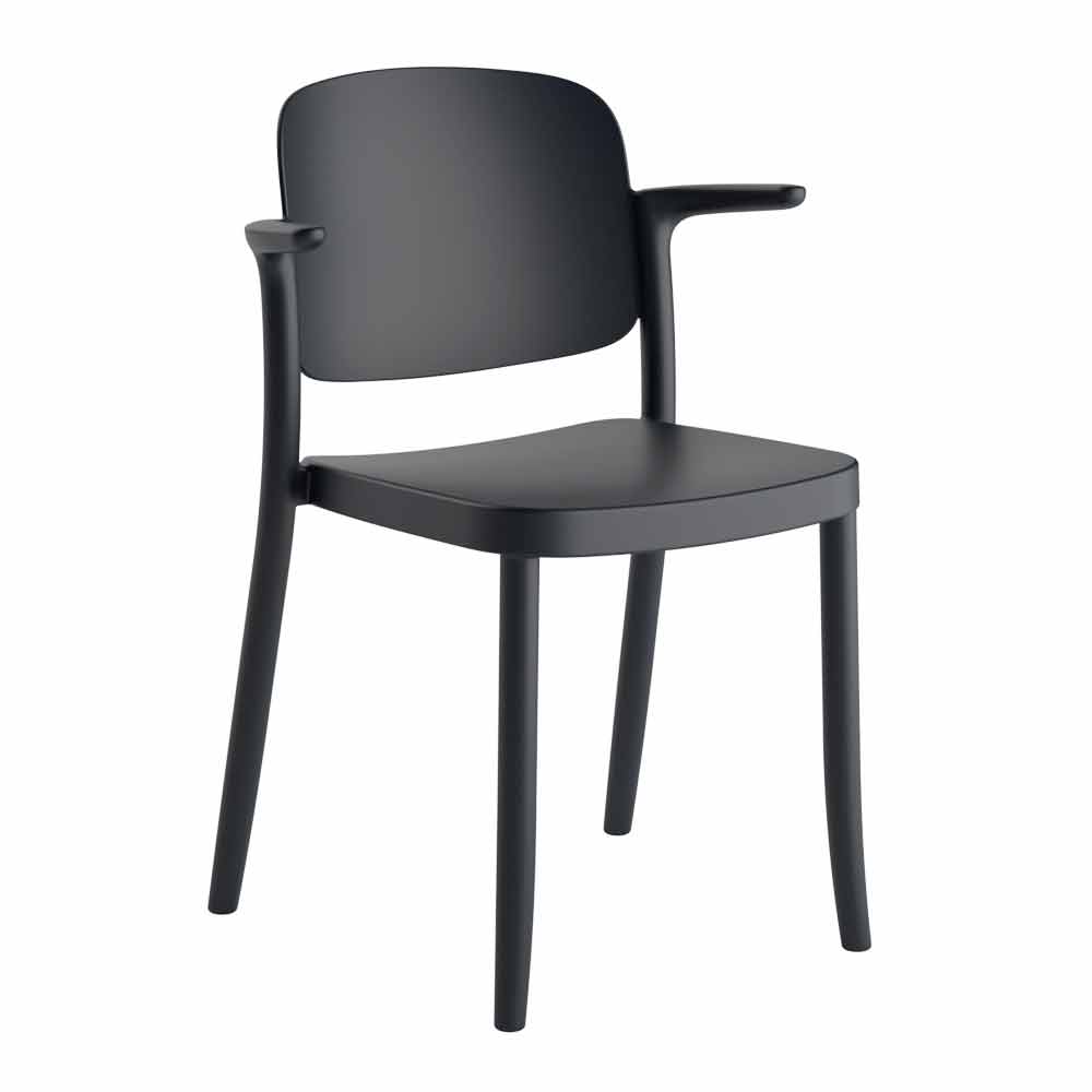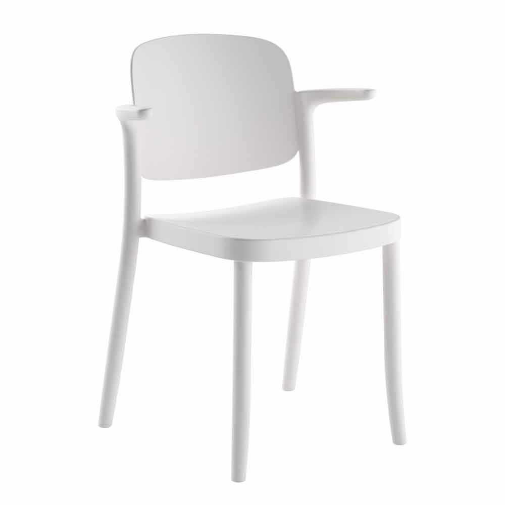 Cadeira de exterior de polipropileno com braços empilháveis, 4 peças, fabricada em Itália.