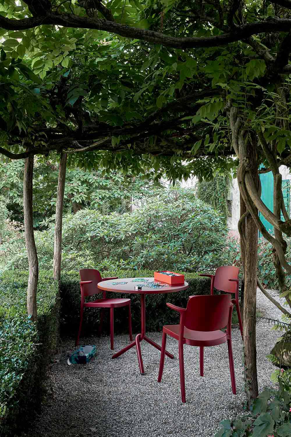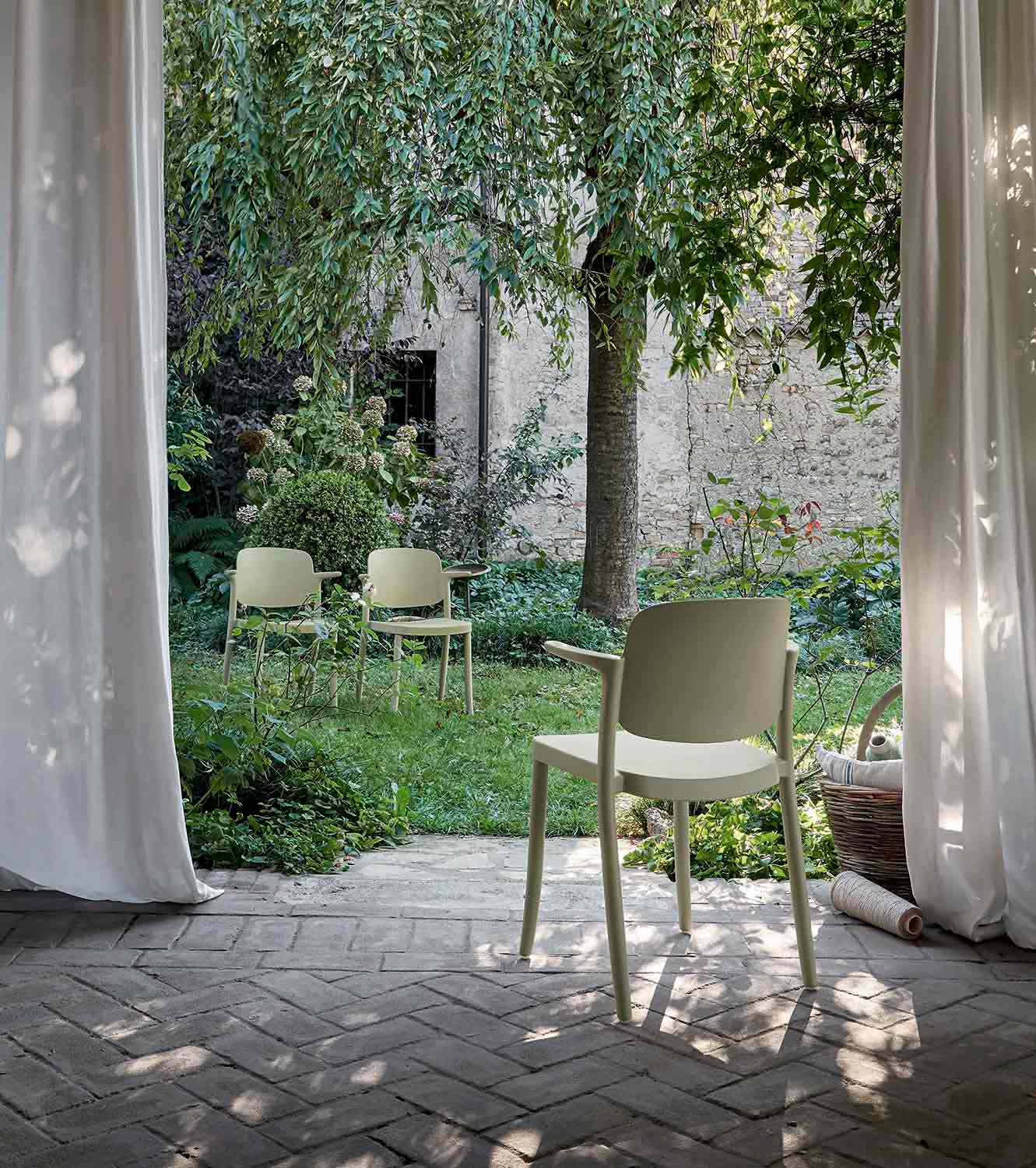 A cadeira ao ar livre Bertina é caracterizada por um design que consegue combinar perfeitamente a tradição que encontramos na forma com a modernidade do polipropileno, que o torna resistente a todas as condições climáticas.